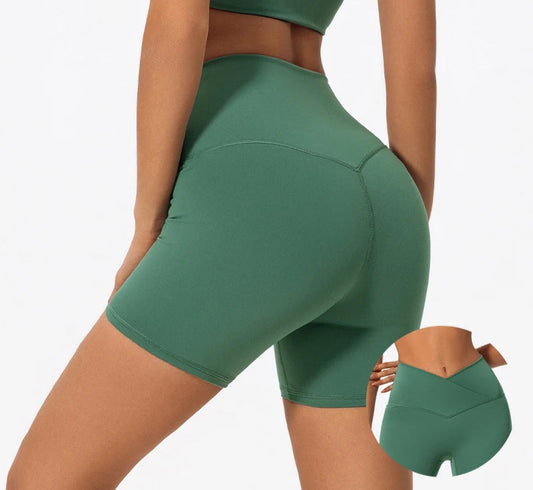 Cross Waist Gym Shorts - High Waist Breathable Cycling Yoga Shorts