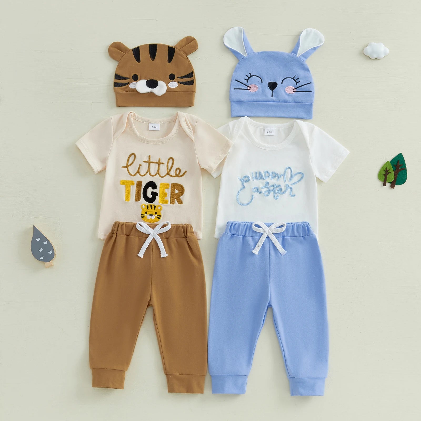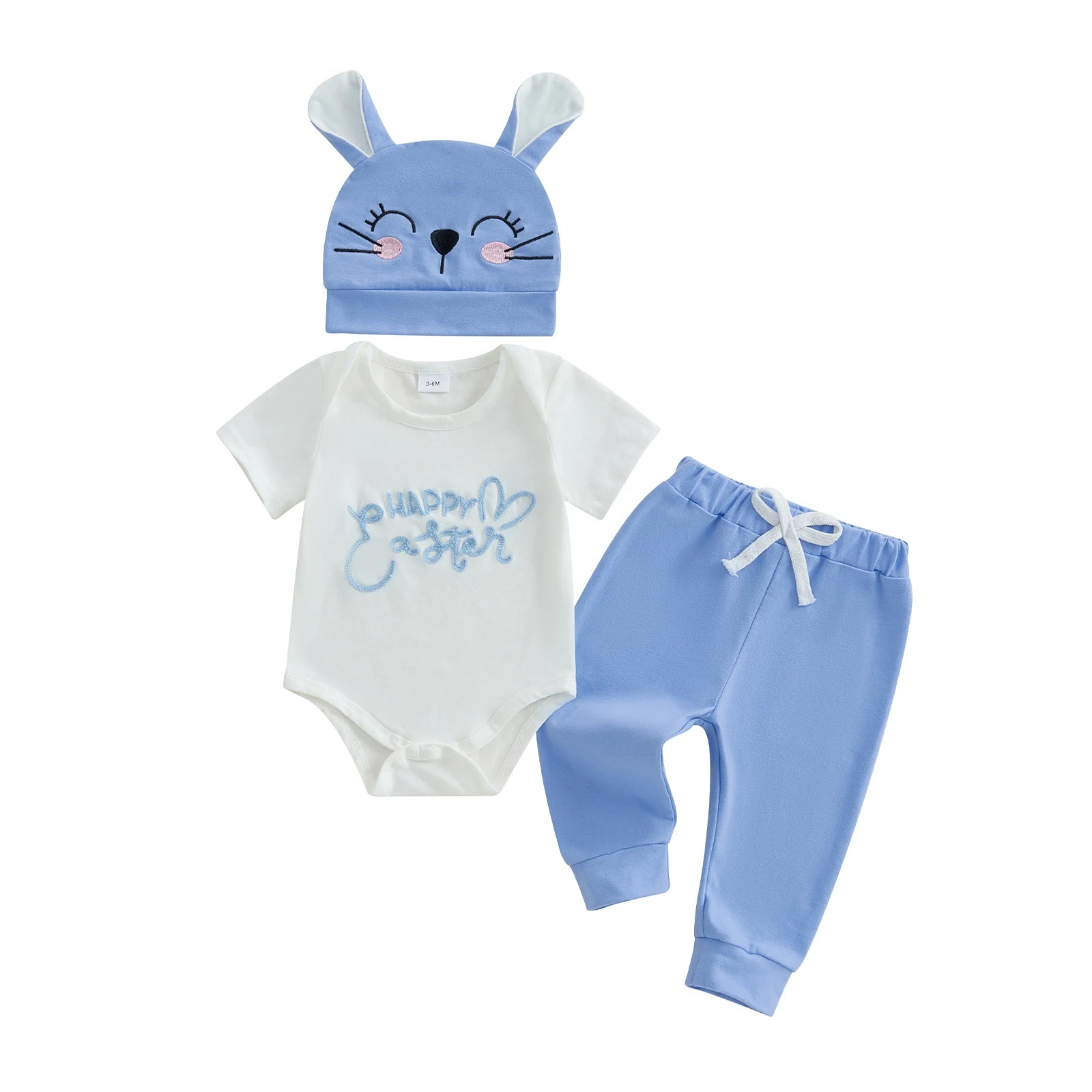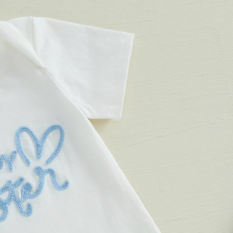 0-18M Baby Boys Girls Easter Clothes Sets 3pcs Letter Embroidery Short Sleeve Romper with Pants and Hat