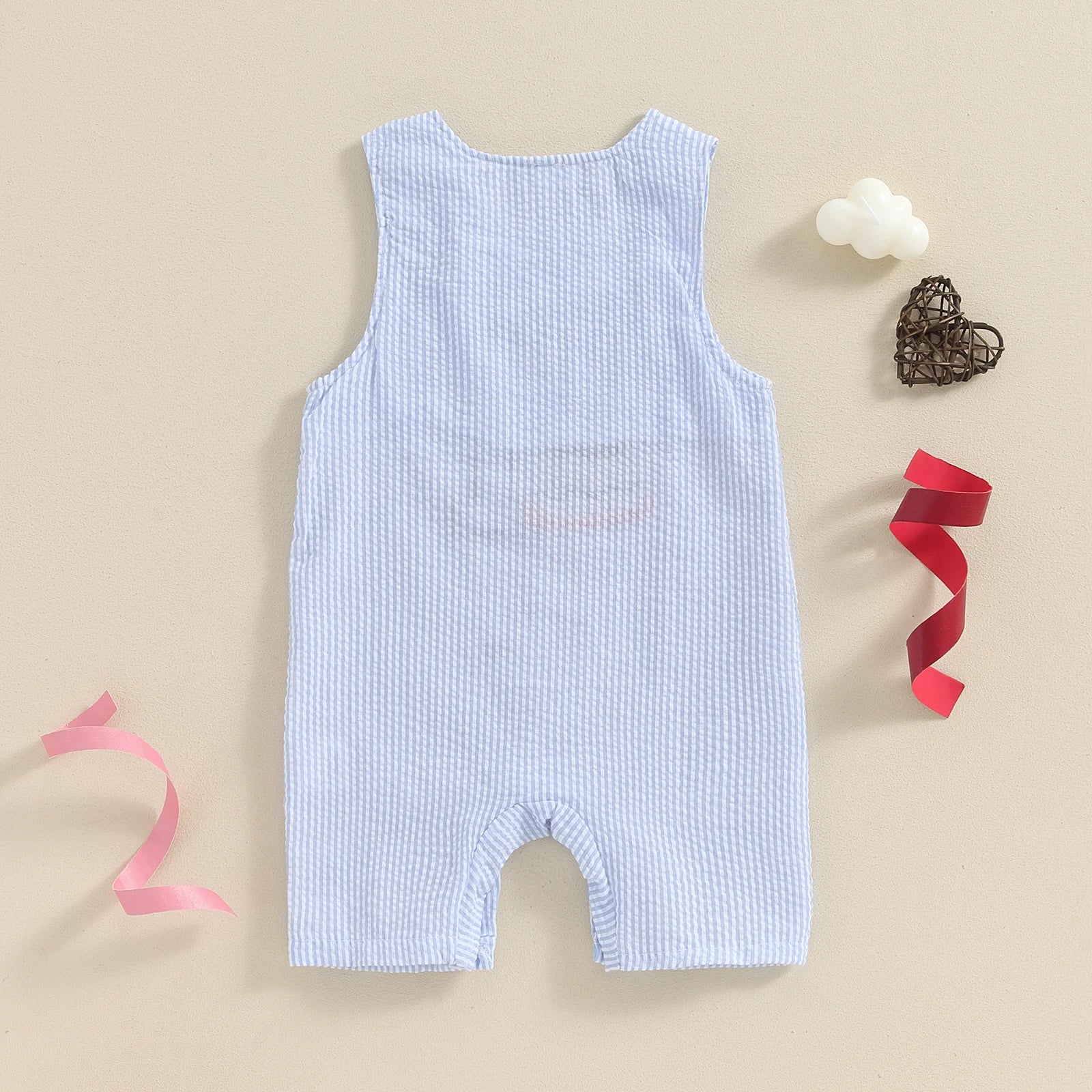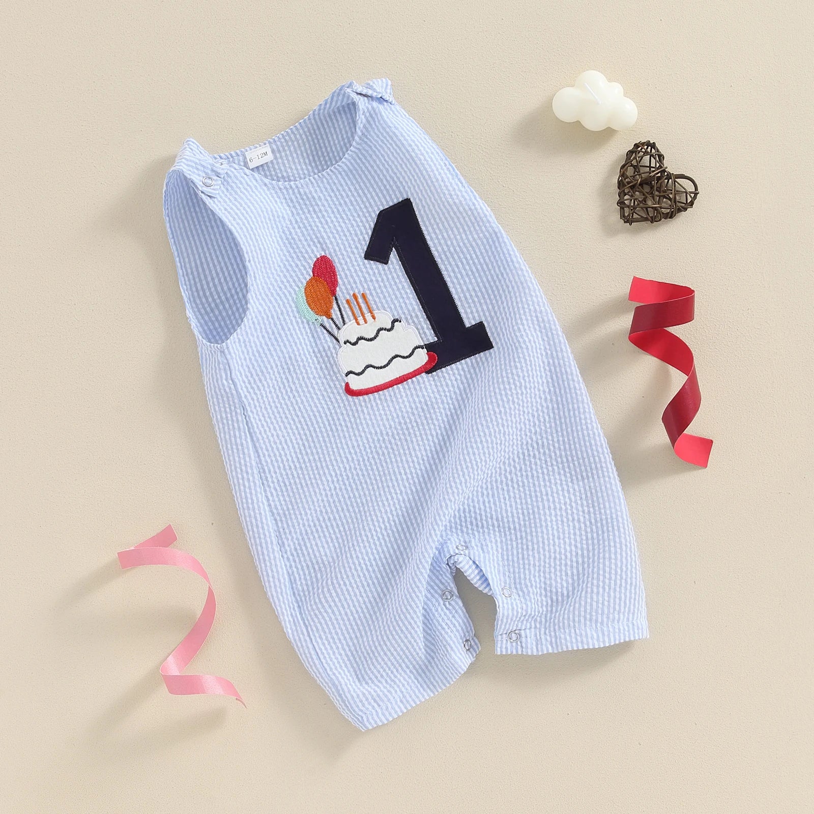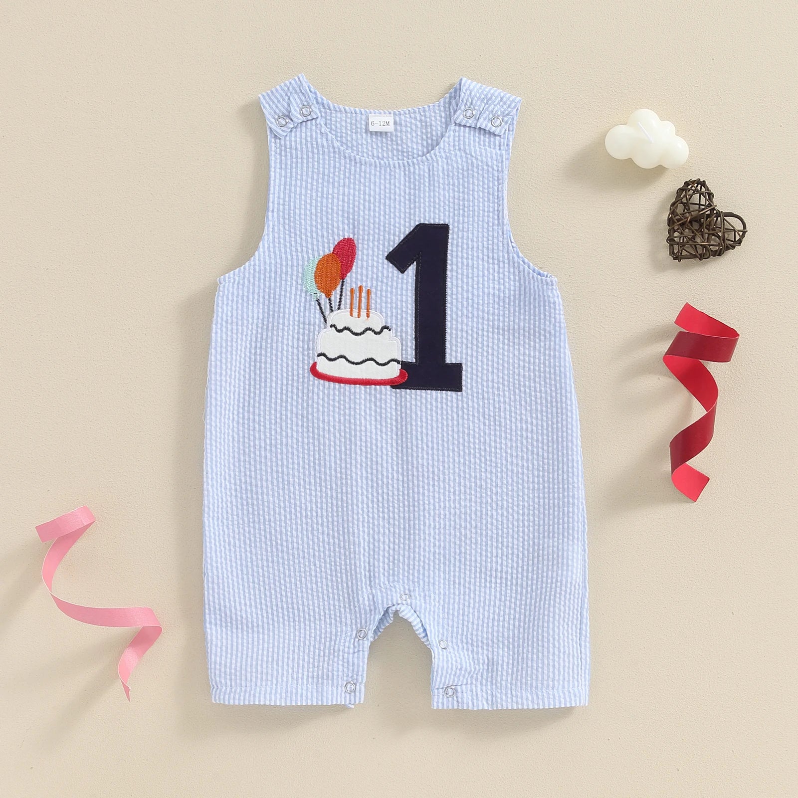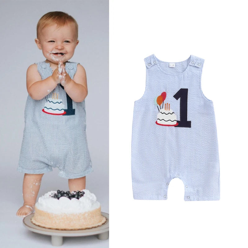 0-18M Baby Boys Overalls Romper Sleeveless Letter Embroidery Cake Striped Birthday Jumpsuits