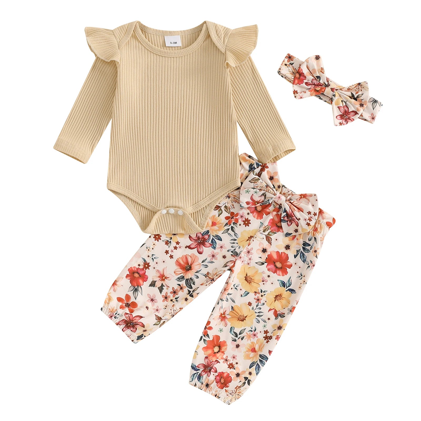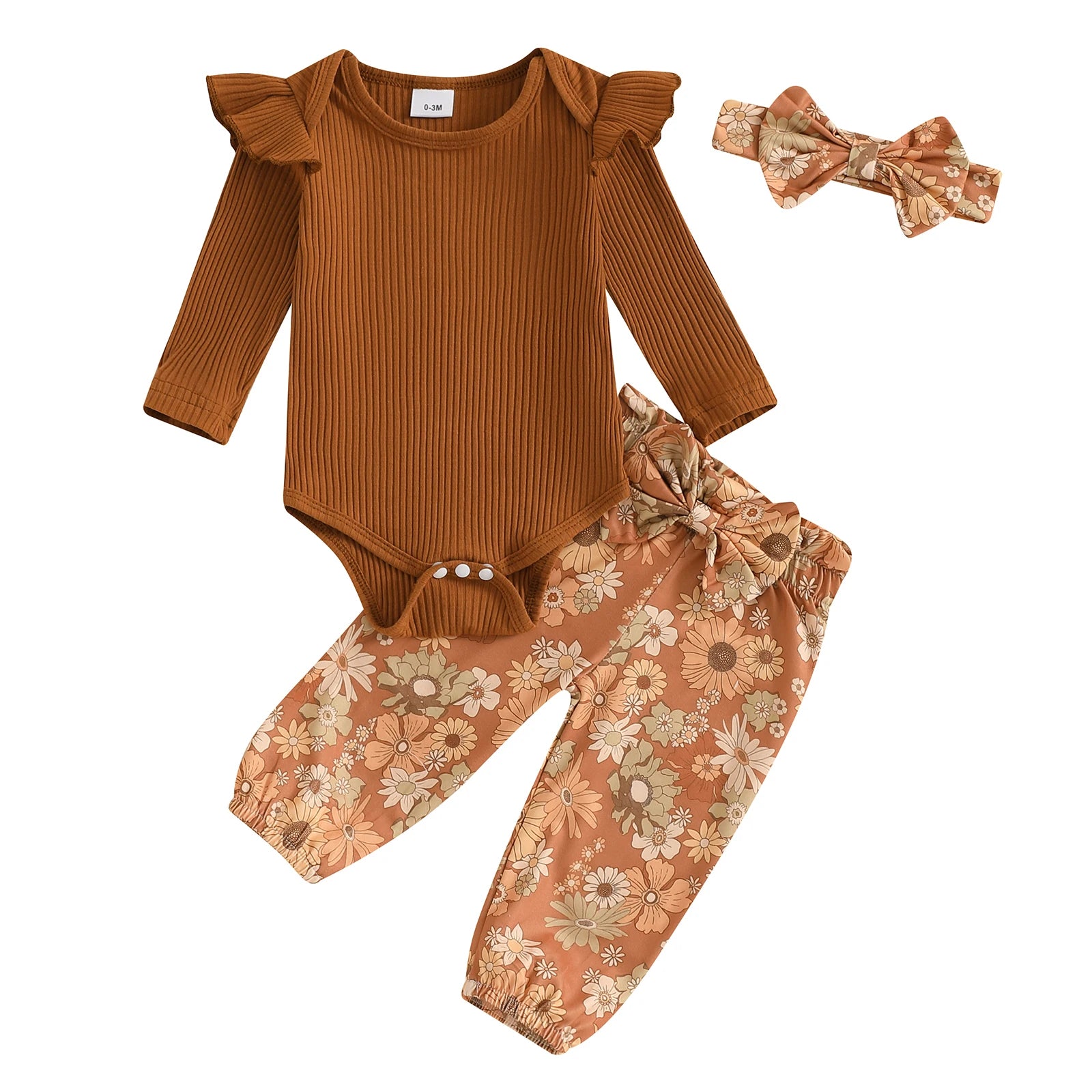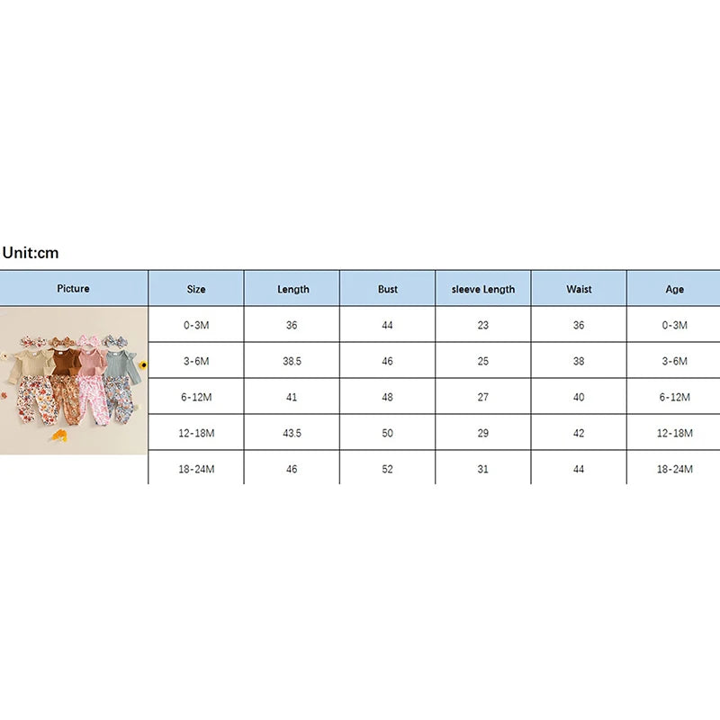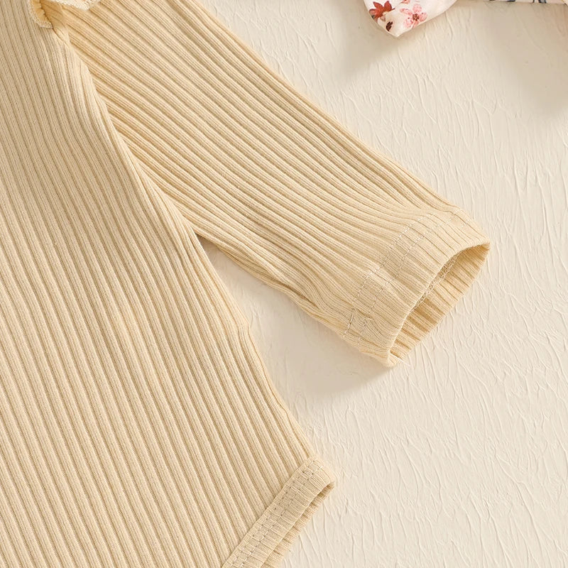 0-18M Baby Girls Fall Clothes Sets 3pcs Long Sleeve Ribbed Romper and Bow Front Pants and Headband