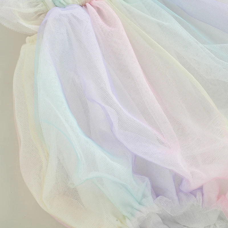 0-18M Baby Girls Romper Fly Sleeve Square Neck Tie-dye Print Lace Mesh Tulle Jumpsuit