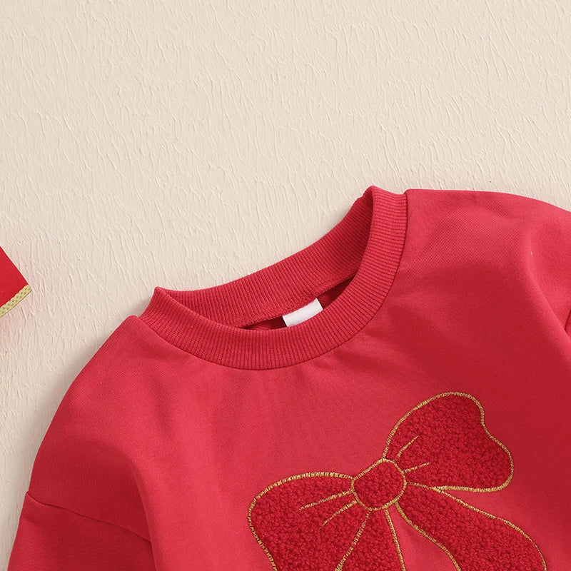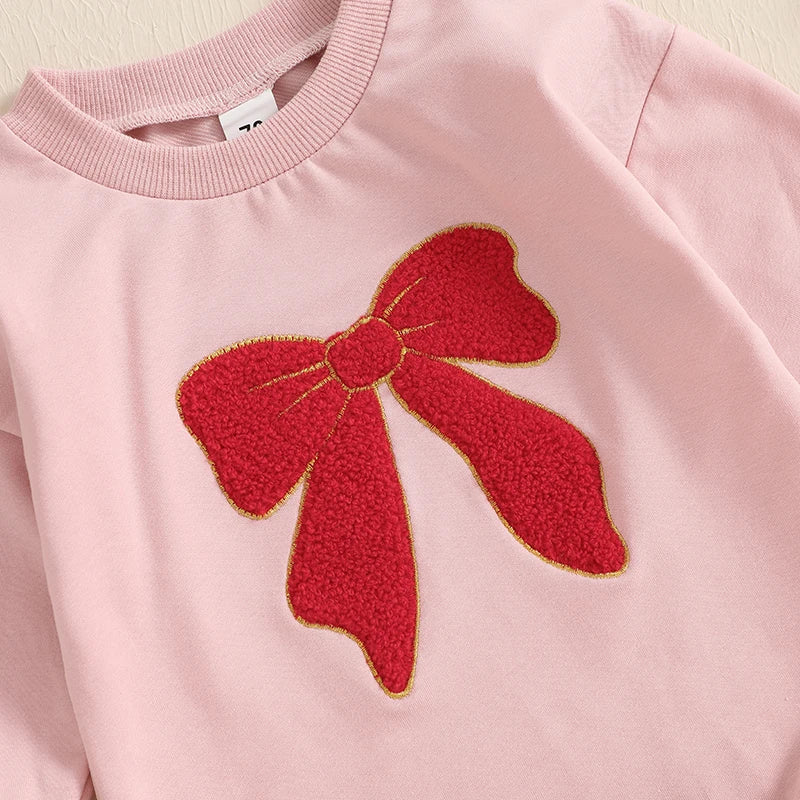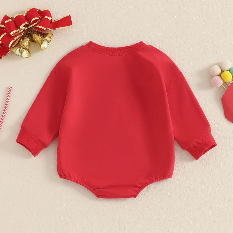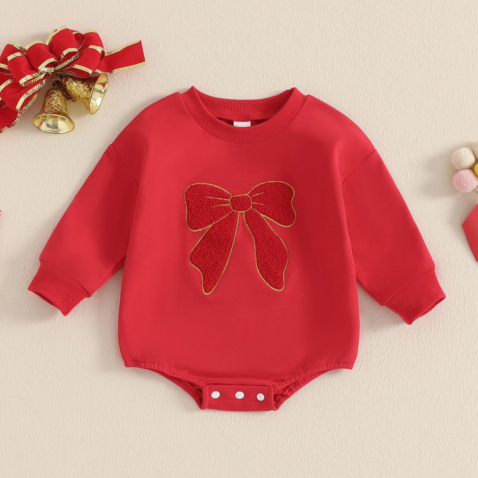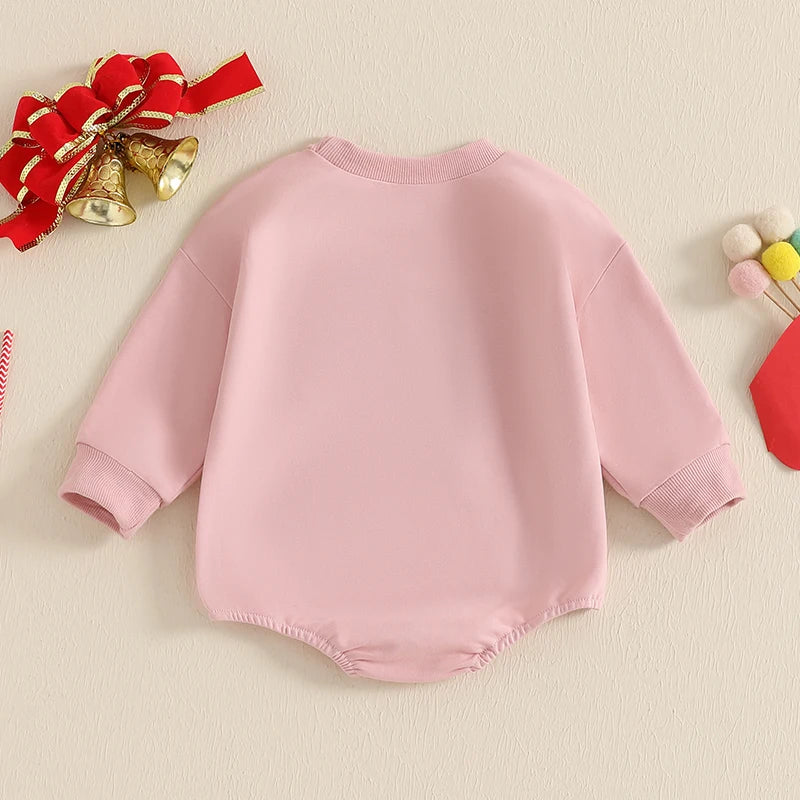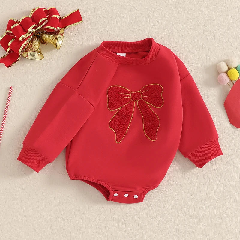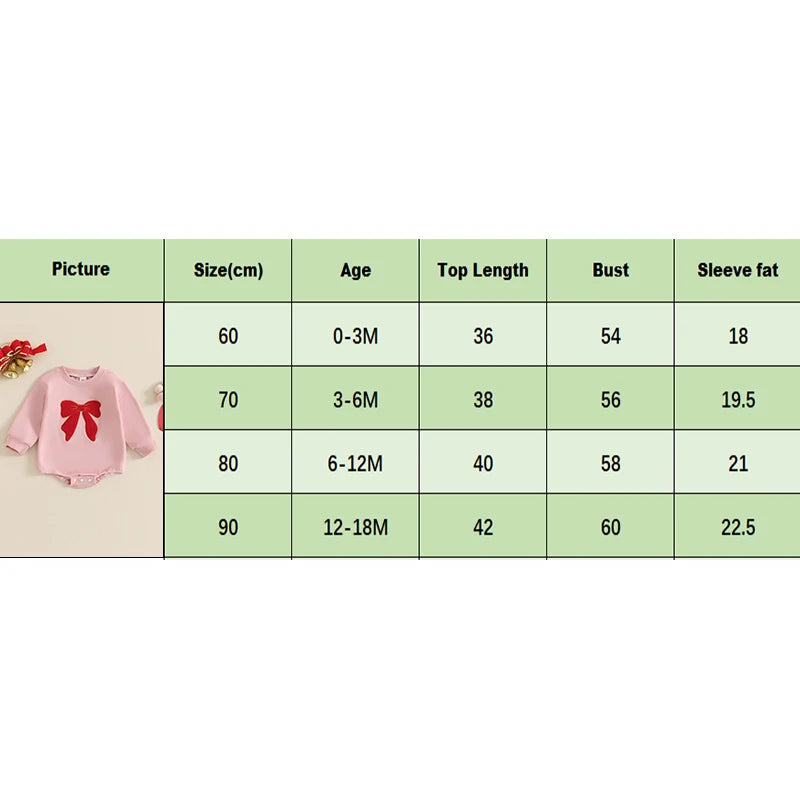 0-18M Baby Girls Sweatshirt Romper Bow Embroidery Long Sleeve Crew Neck Bubble Jumpsuit