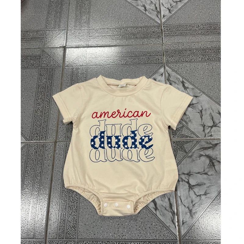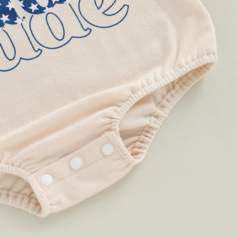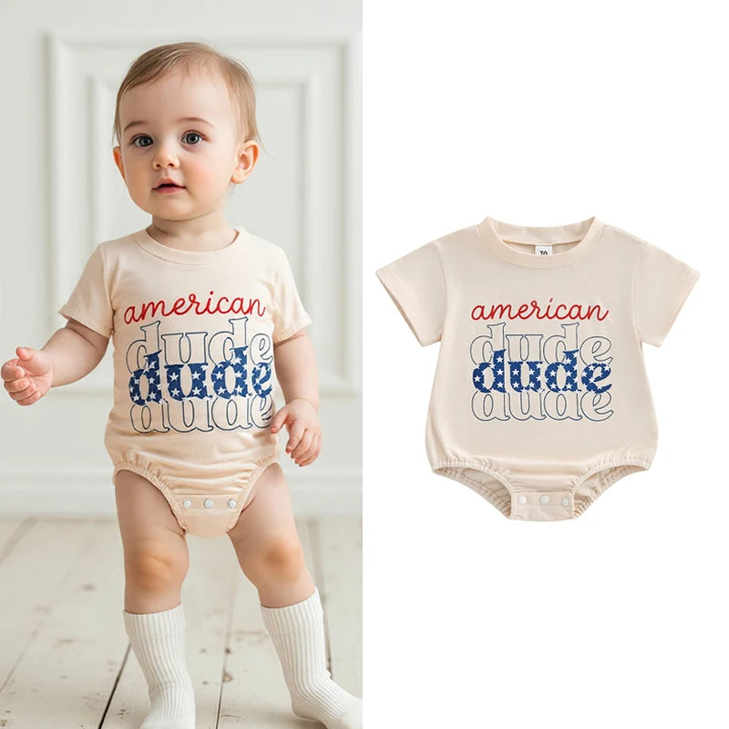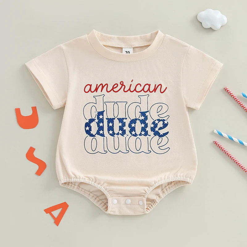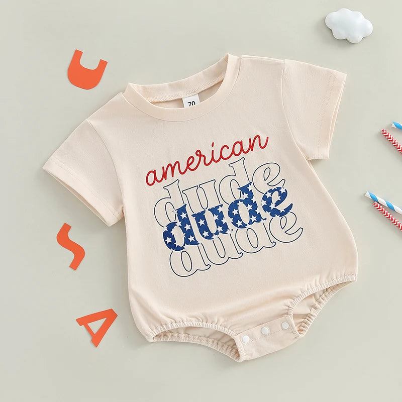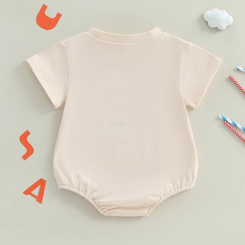 Baby Boy Romper, Short Sleeve Crew Neck Letters Print Summer Bodysuit Clothes for 4th of July