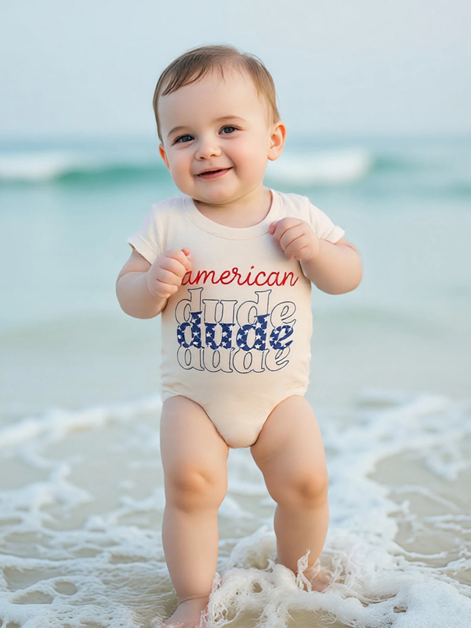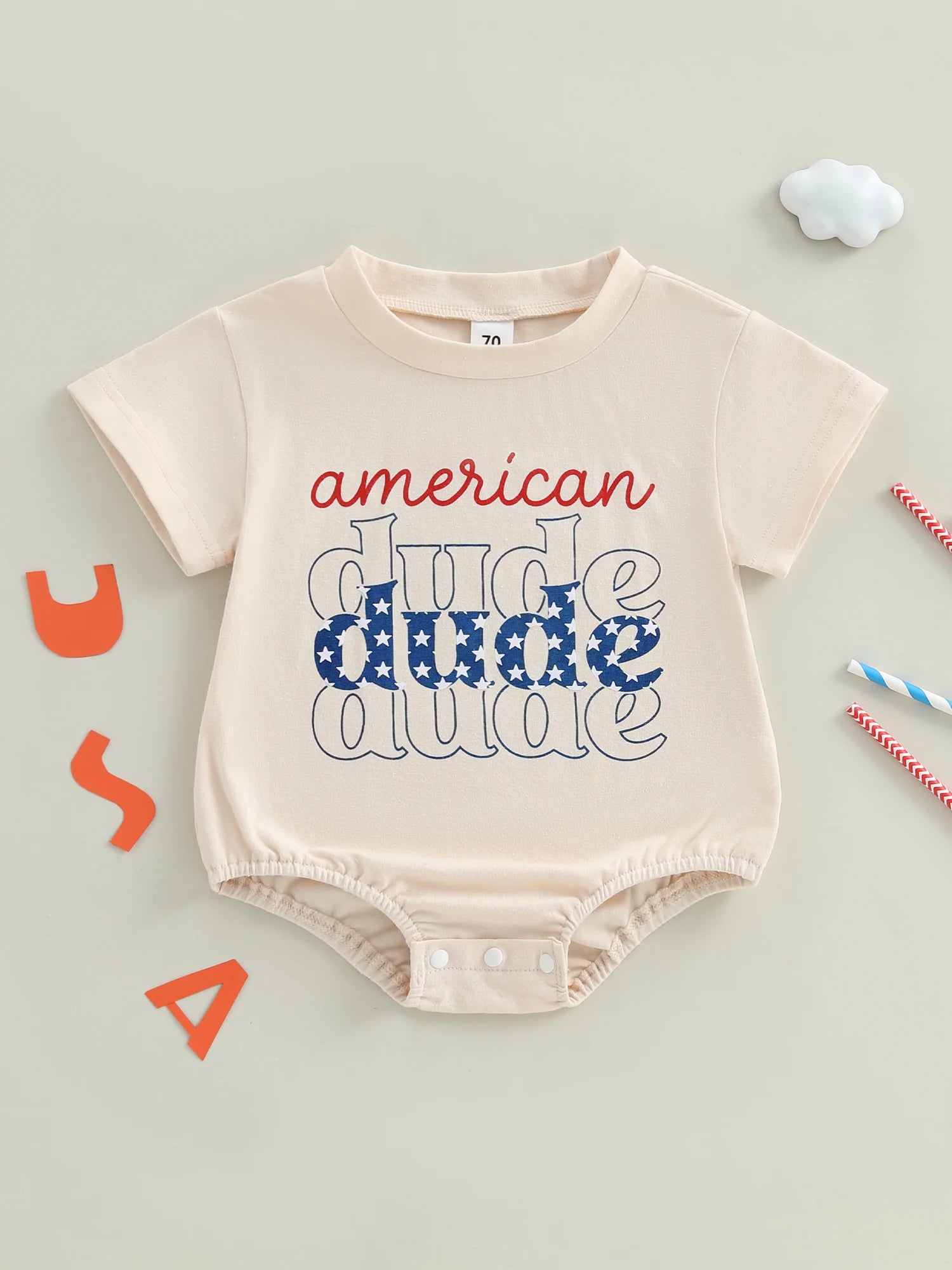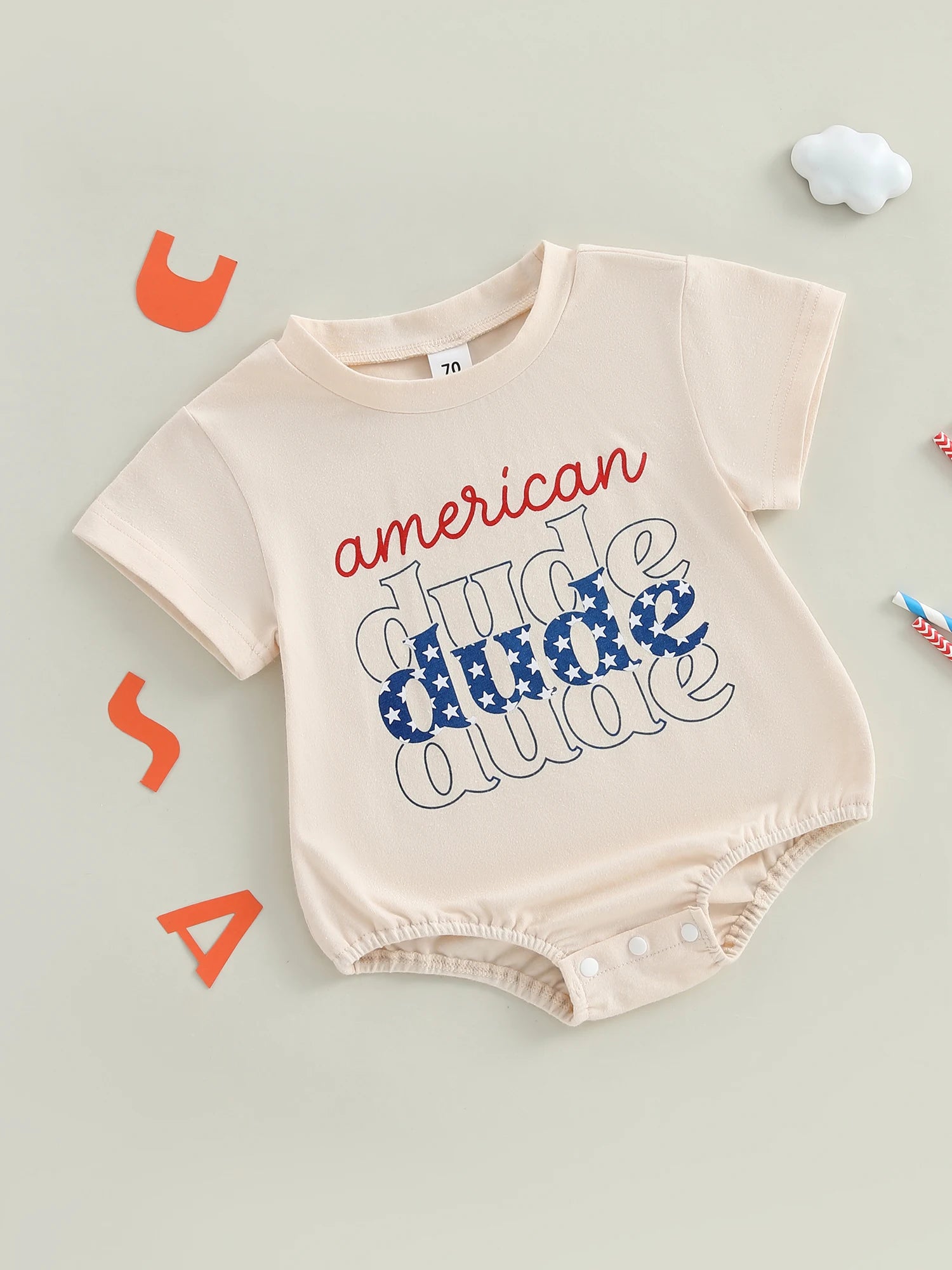 Baby Boy Romper, Short Sleeve Crew Neck Letters Print Summer Bodysuit Clothes for 4th of July