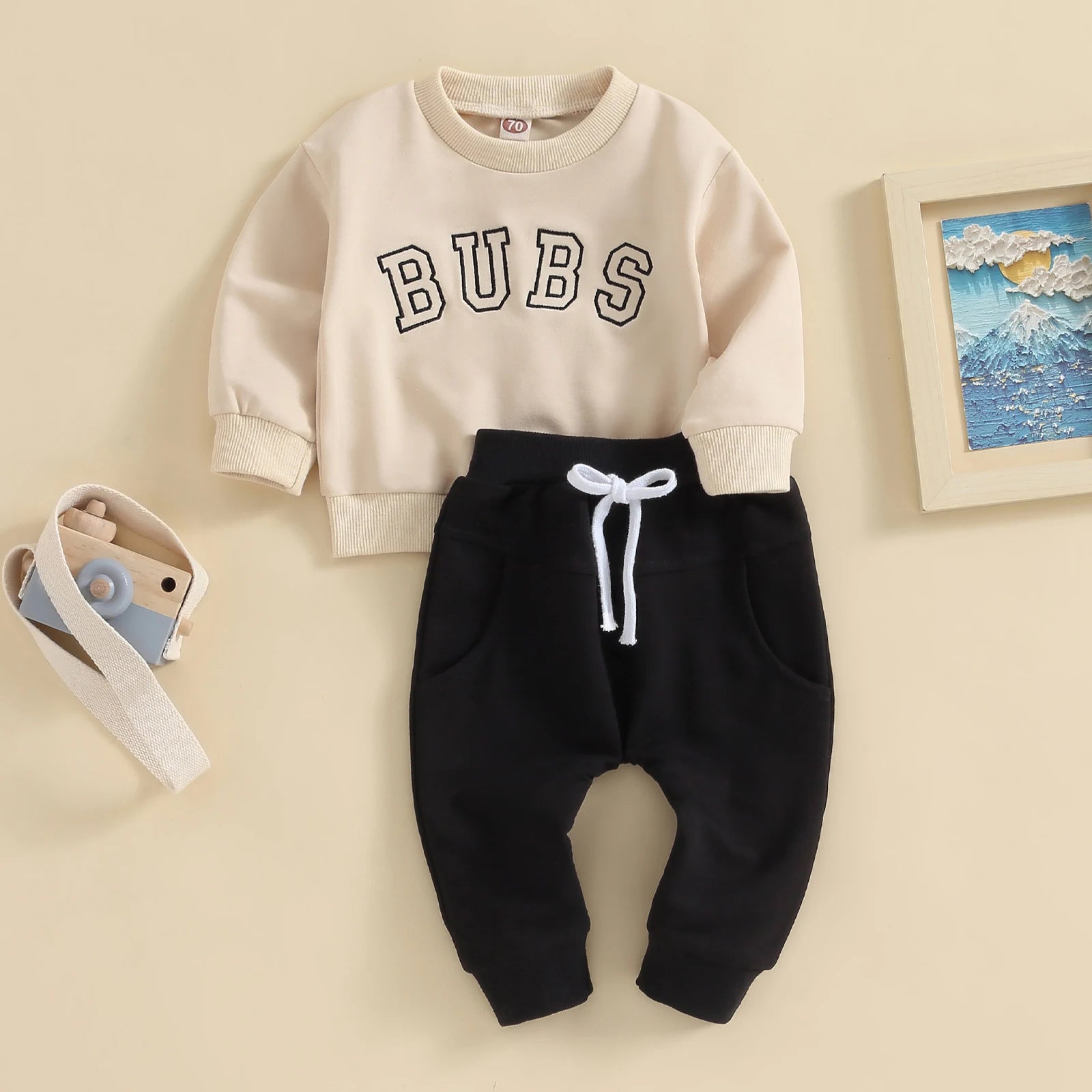 0-3Y Baby Boys 2pcs Long Sleeve Letter Print Pullover Sweatshirt and Trousers Set