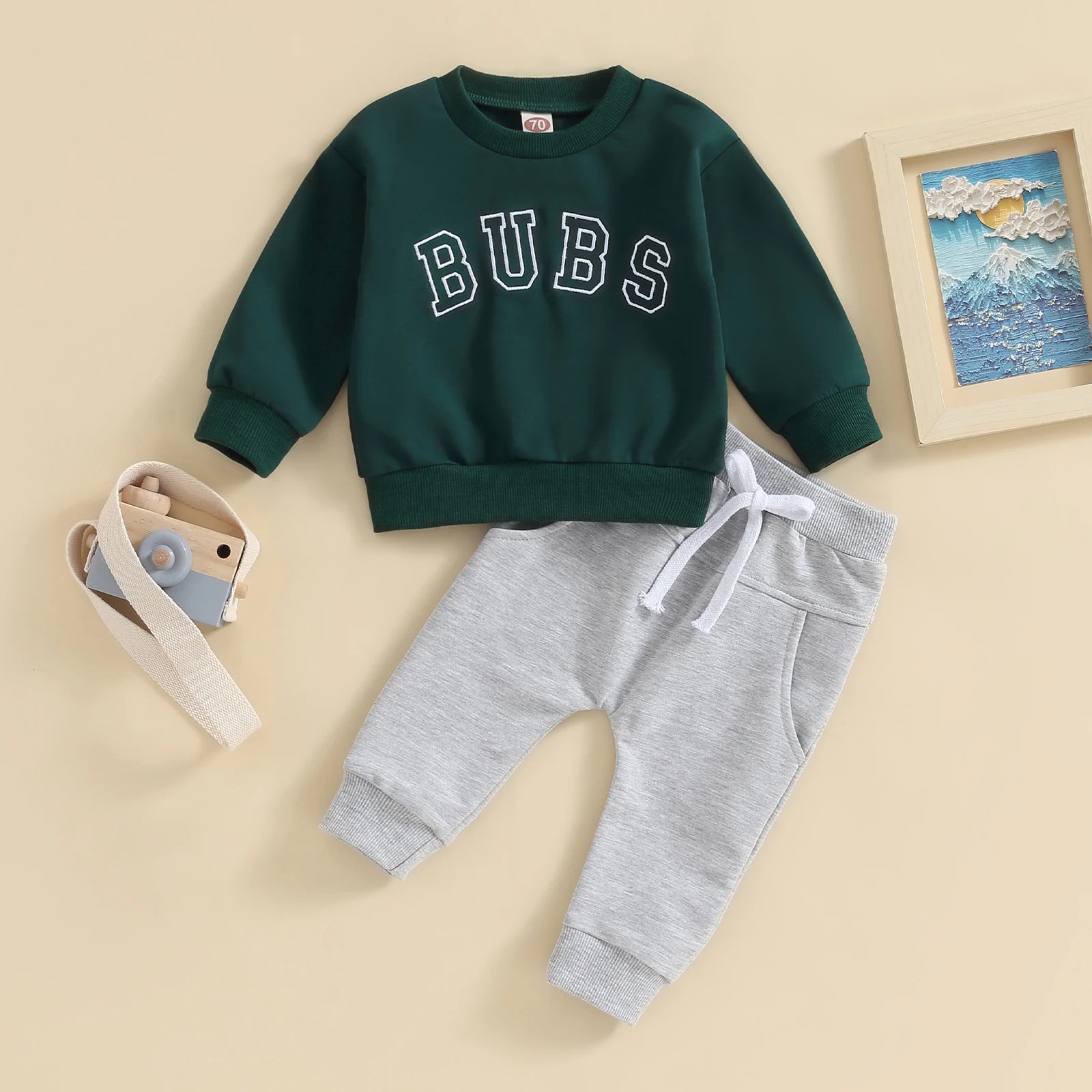 Baby Boy Fall Outfits Classic Long Sleeve Letter Print Sweatshirt + Trousers Set Toddler Clothes