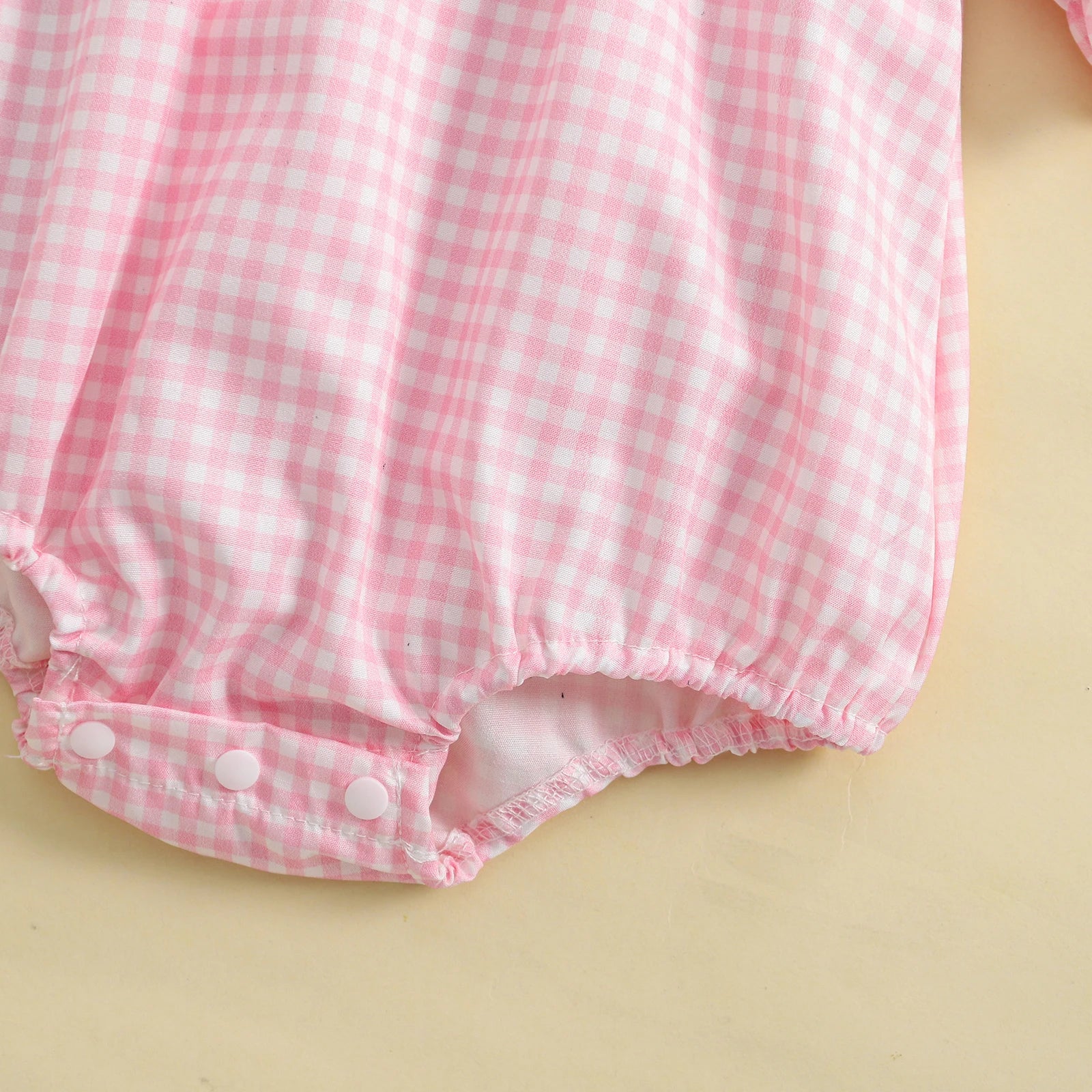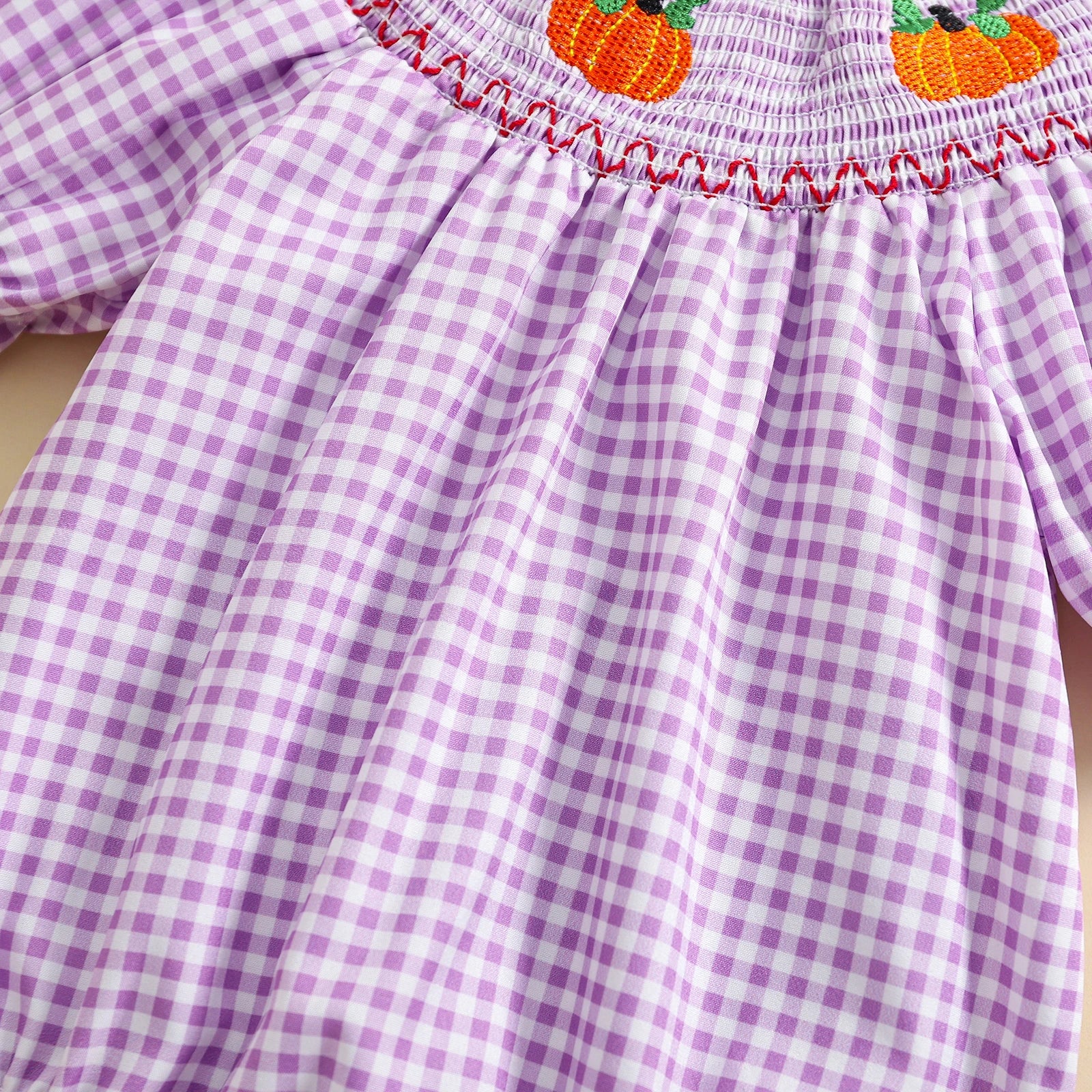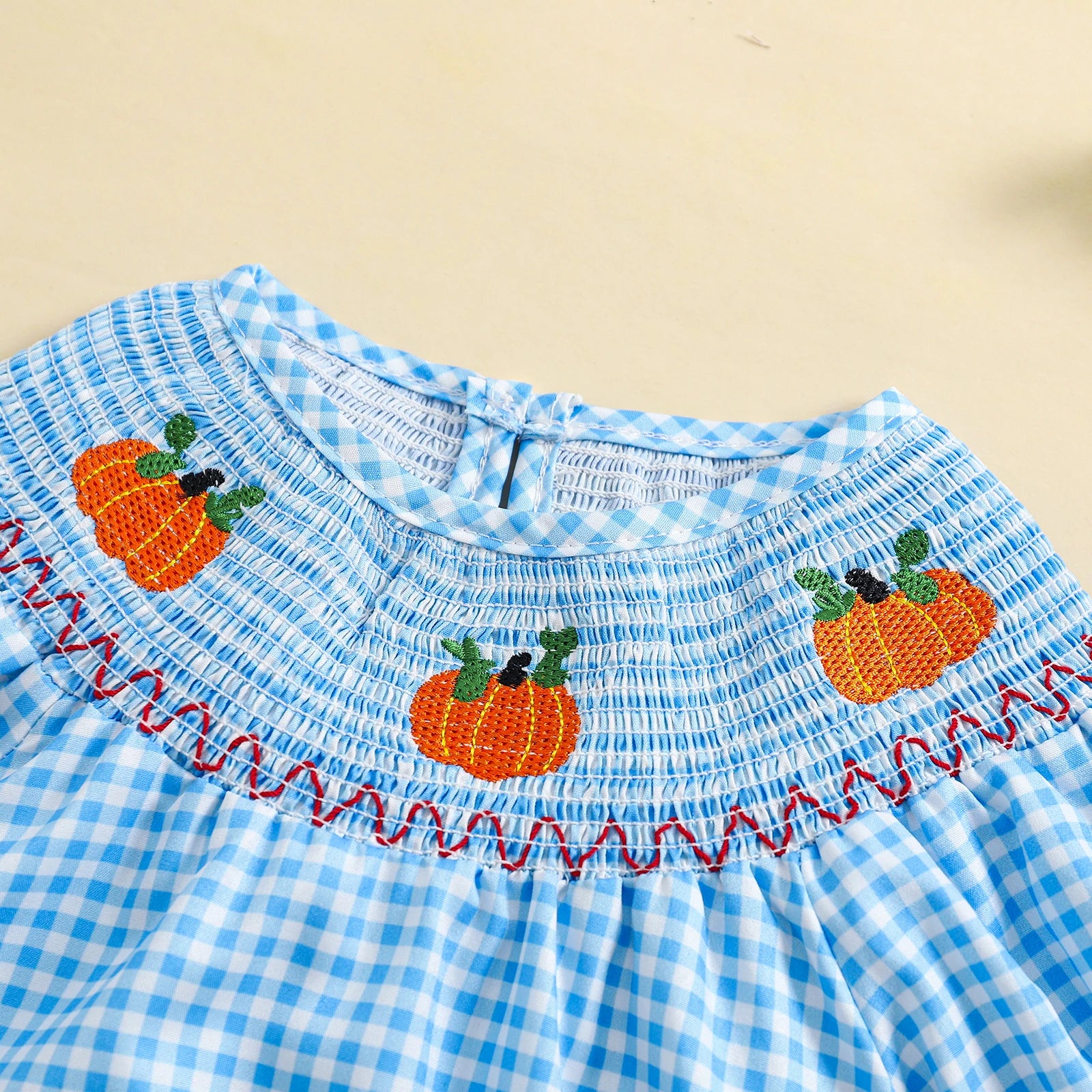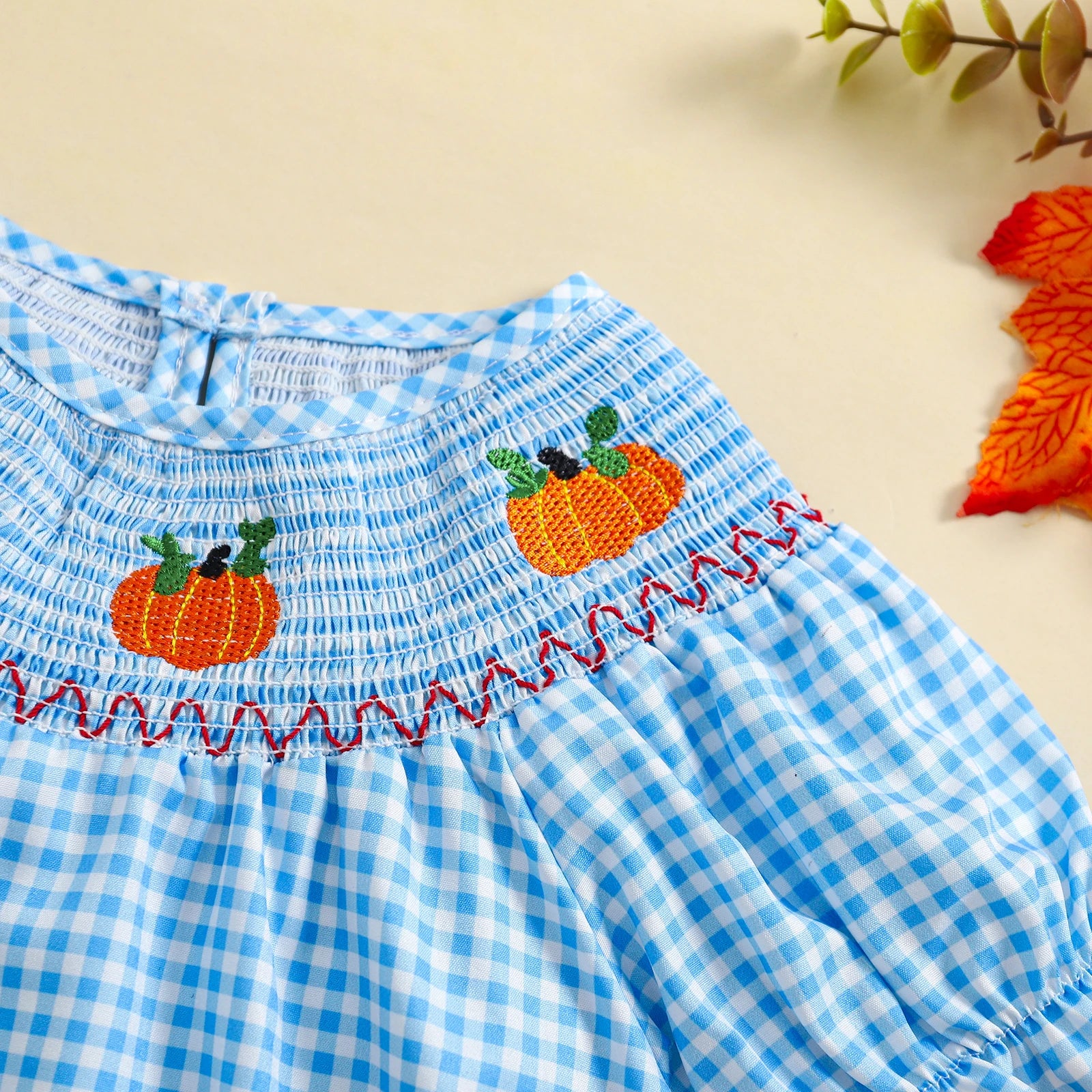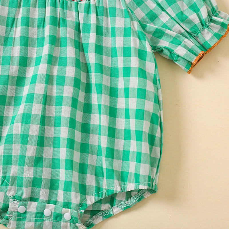 0-3Y Baby Girls Boys Romper Pumpkin Embroidered Plaid Print Short Sleeve Ruffled Jumpsuits