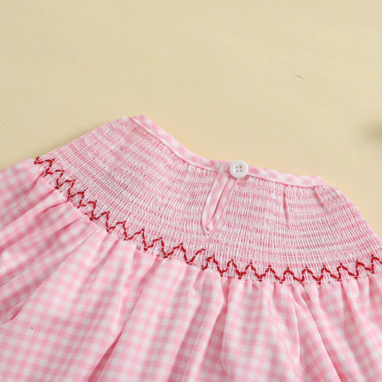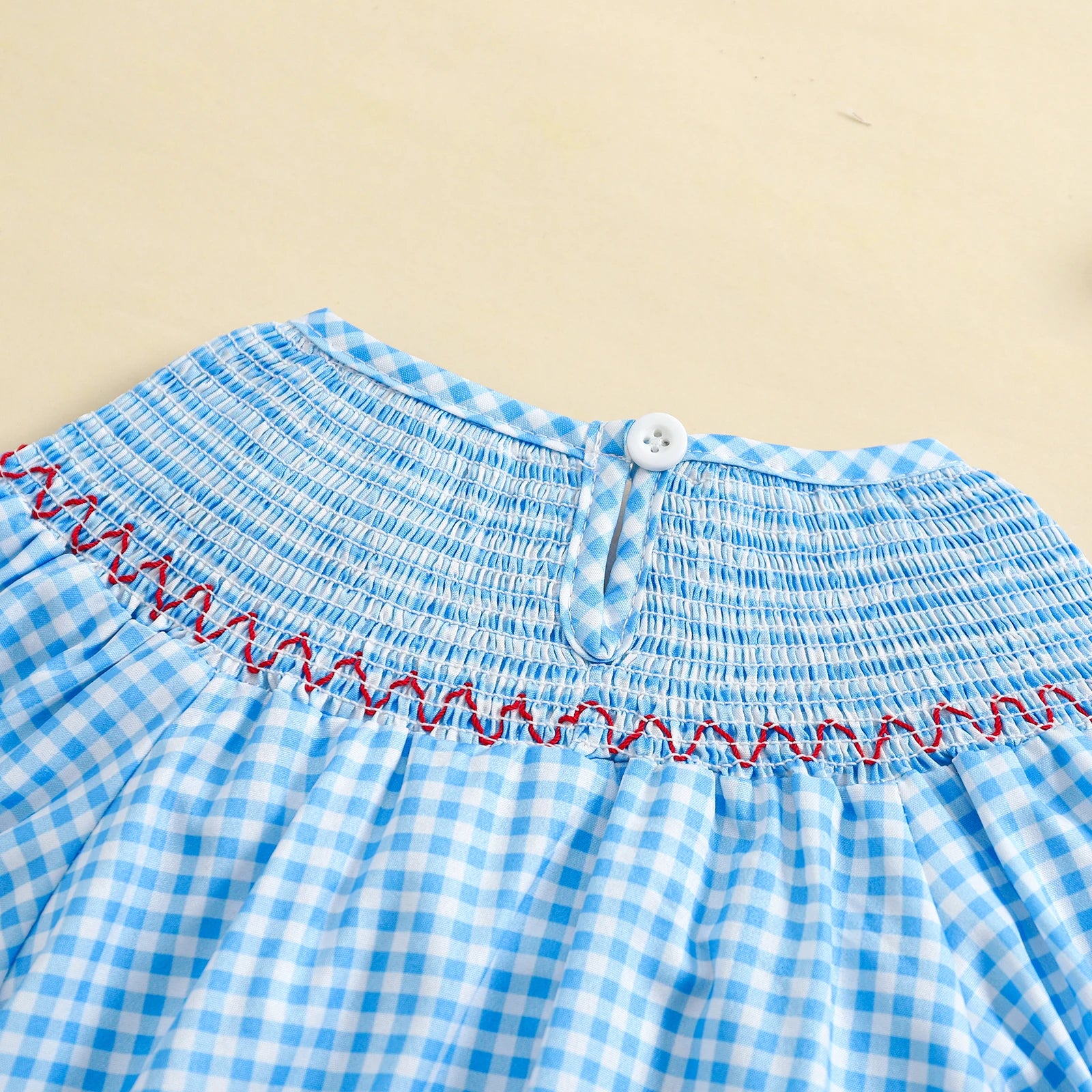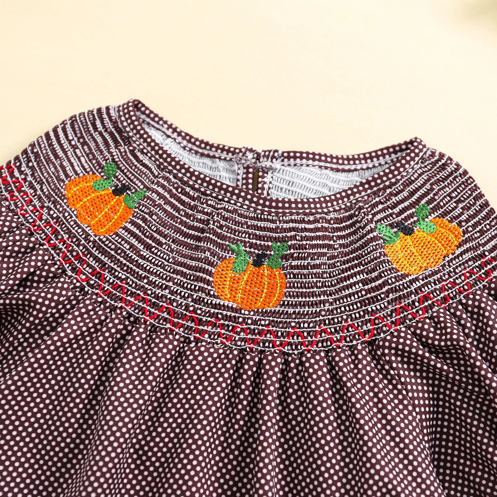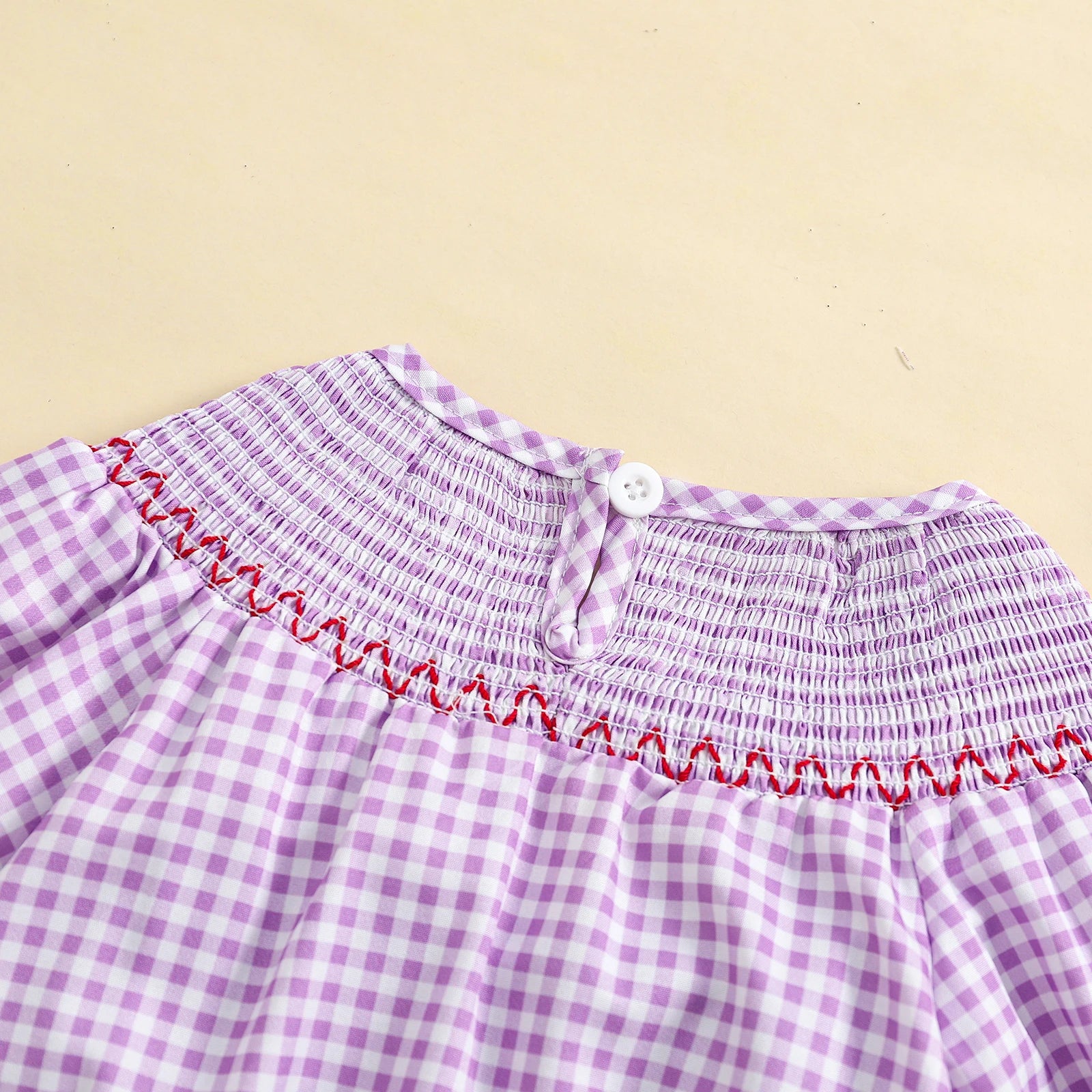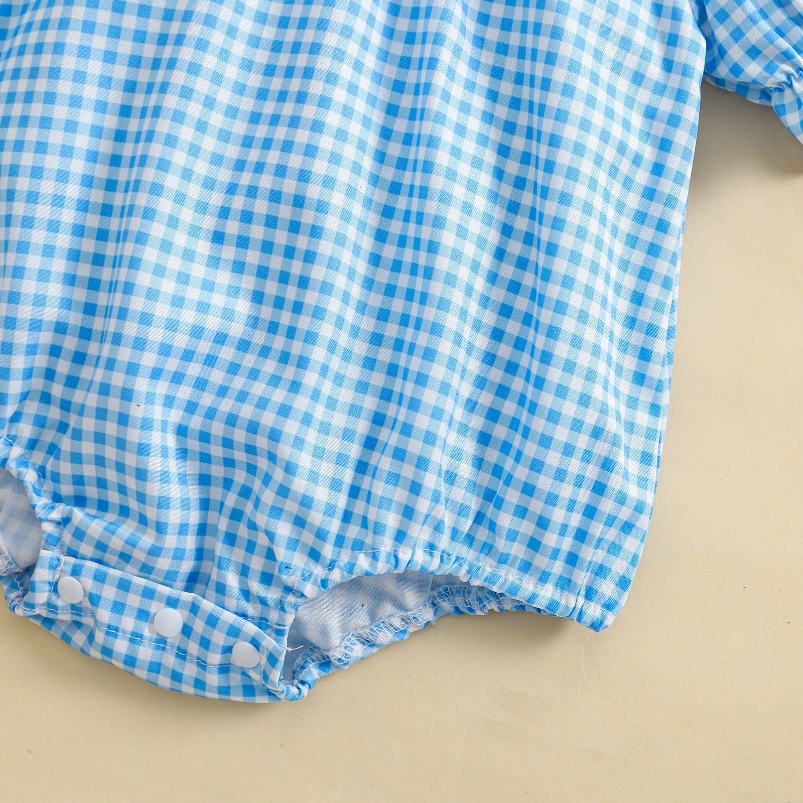 0-3Y Baby Girls Boys Romper Pumpkin Embroidered Plaid Print Short Sleeve Ruffled Jumpsuits