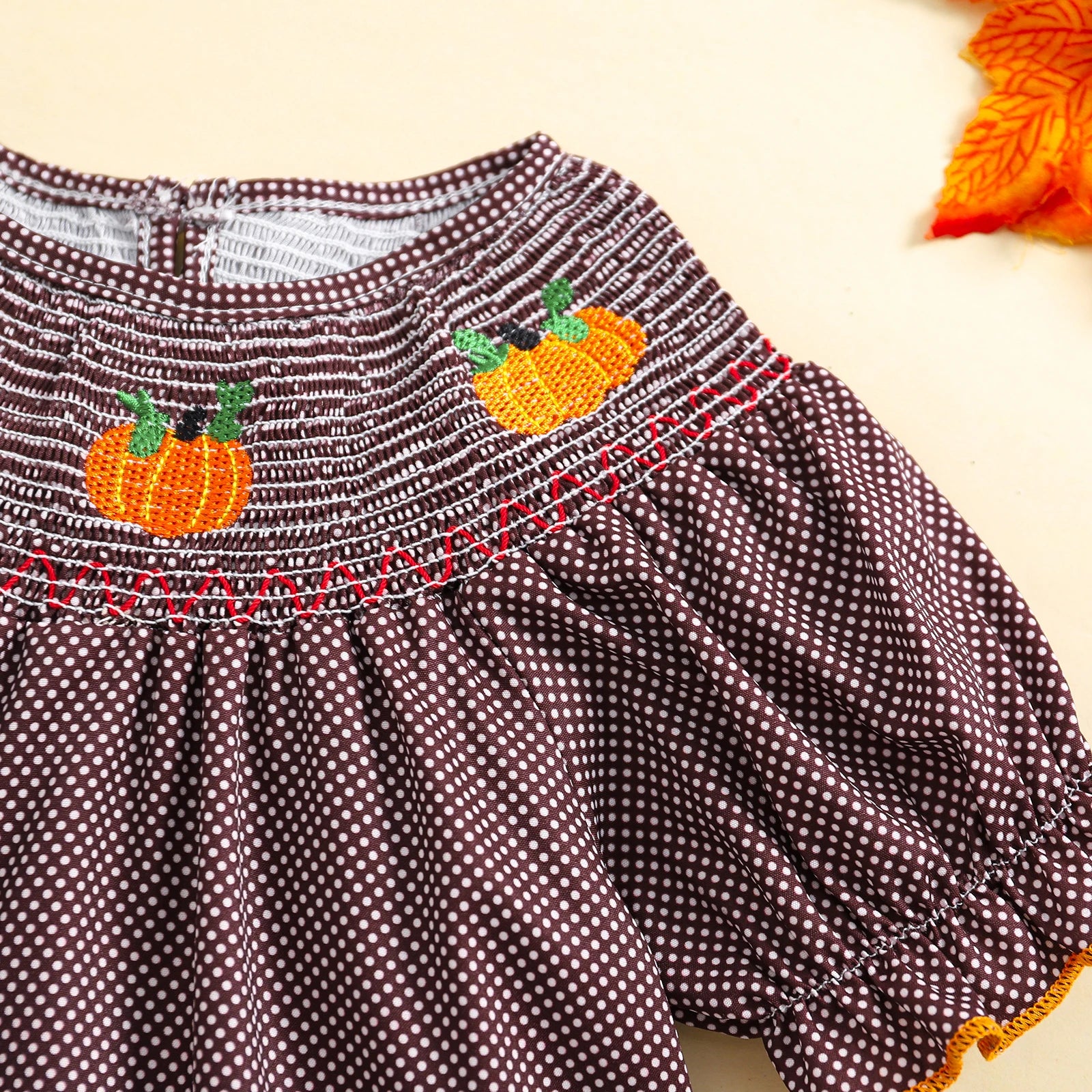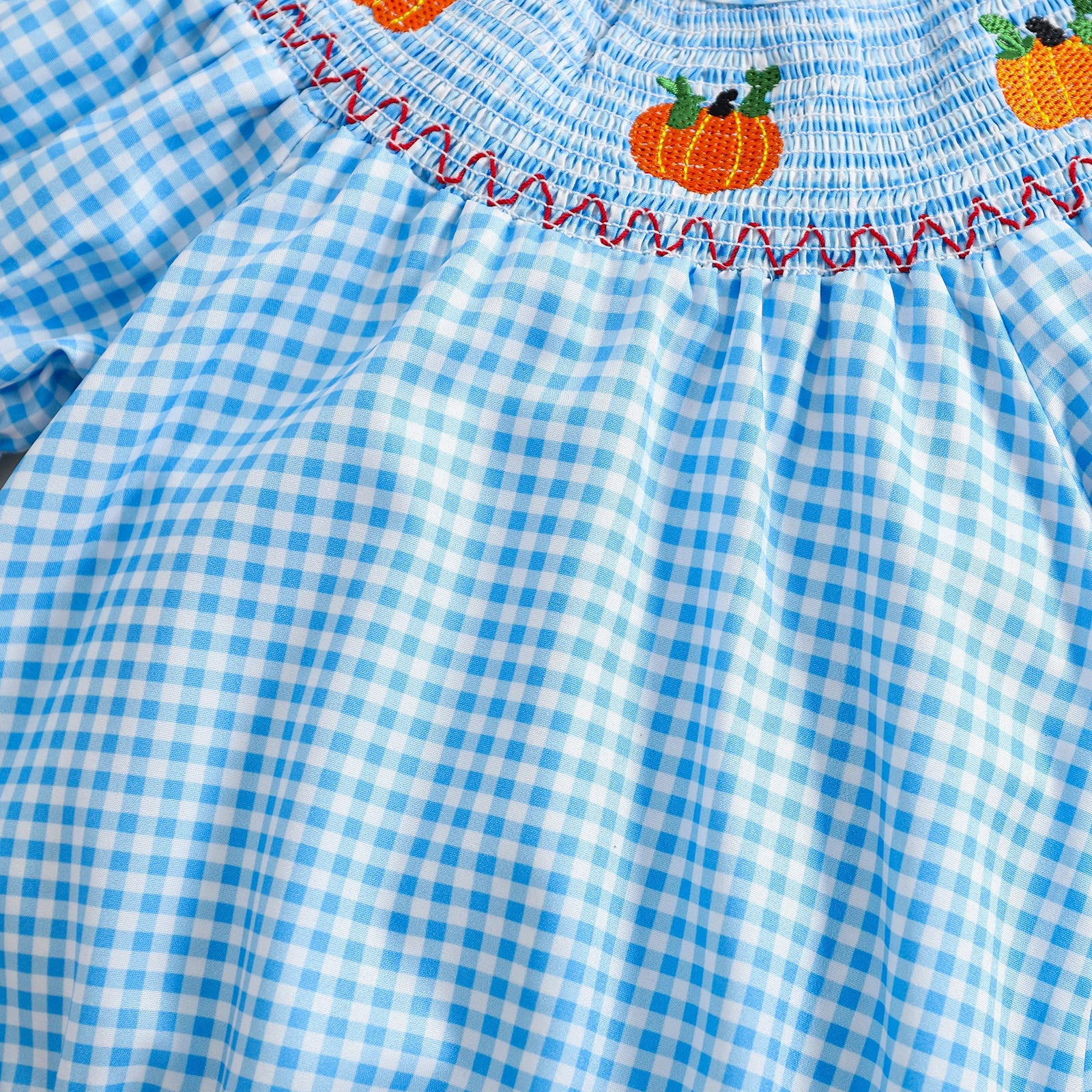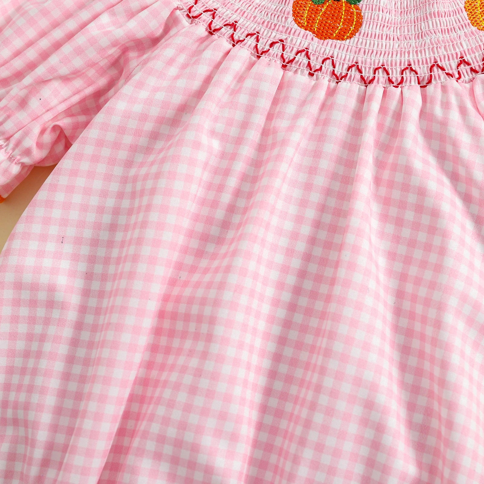 Baby Fall Romper Pumpkin Embroidered Plaid Short Sleeve Round Neck Ruffled Jumpsuits
