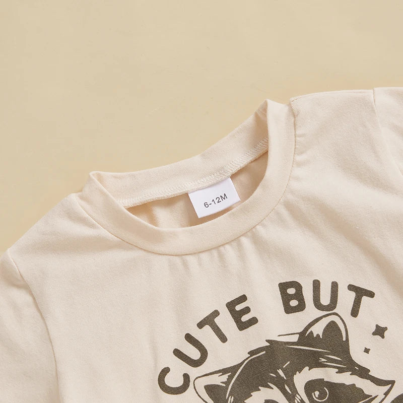 Toddler Boys Summer Outfits Raccoon Letter Print Round Neck Short Sleeve T-Shirts Elastic Waist Shorts 2Pcs Clothes Set