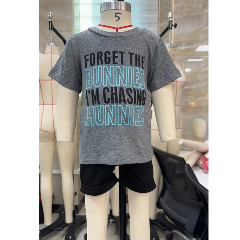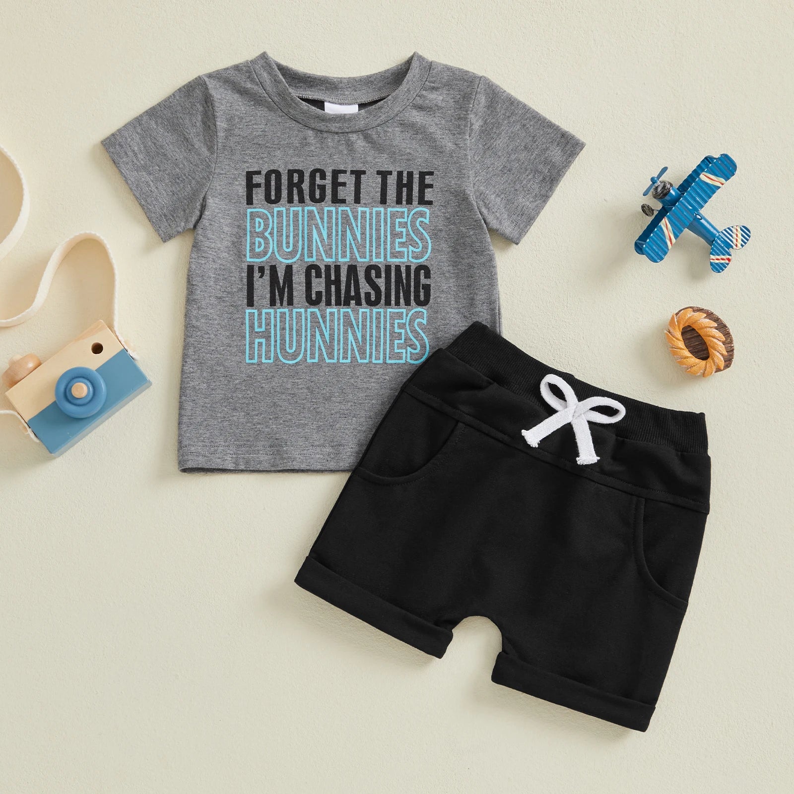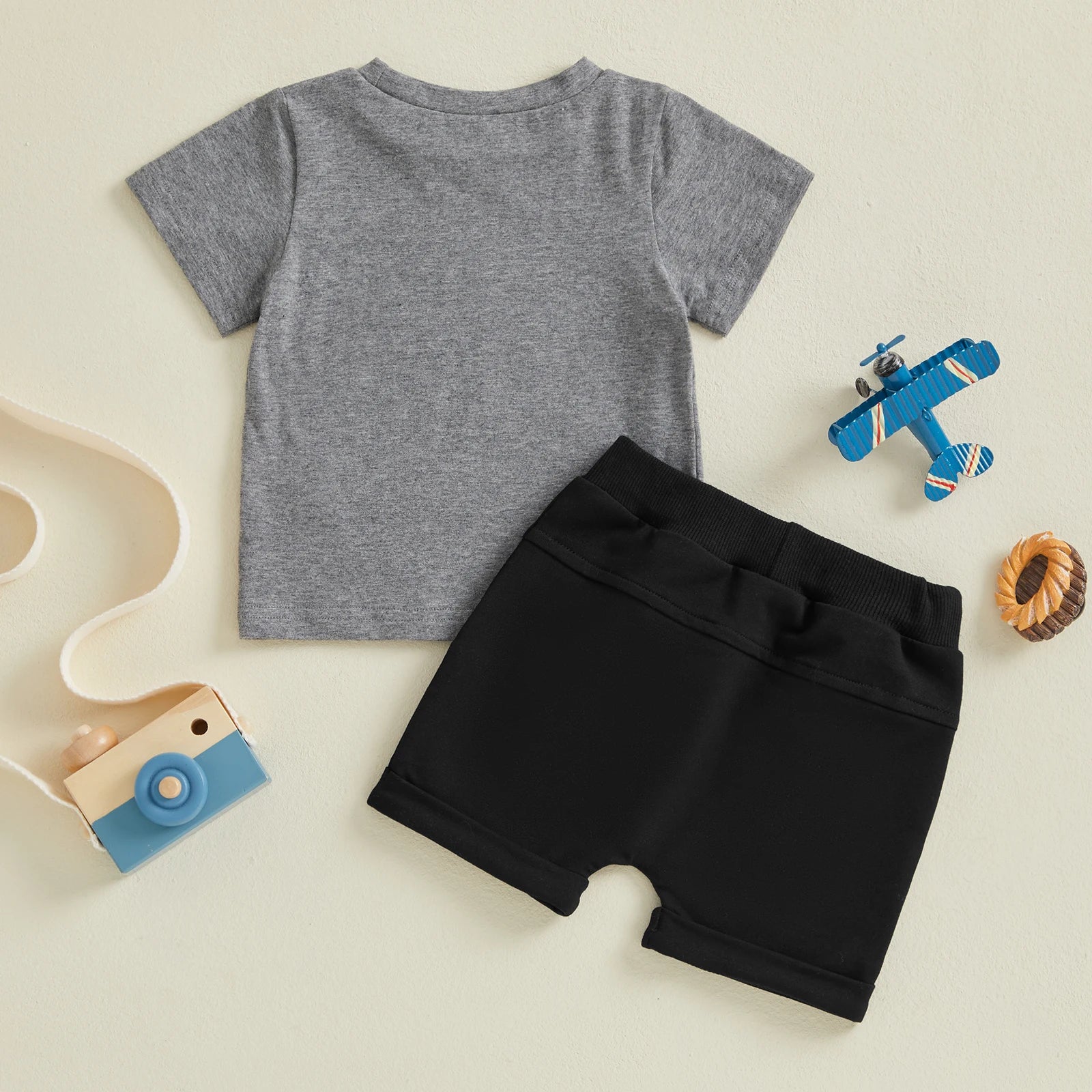 0-3Y Infant Baby Boys Easter Clothes Sets Outfit 2pcs Letter Print Short Sleeve Grey Pullover T Shirts and Shorts