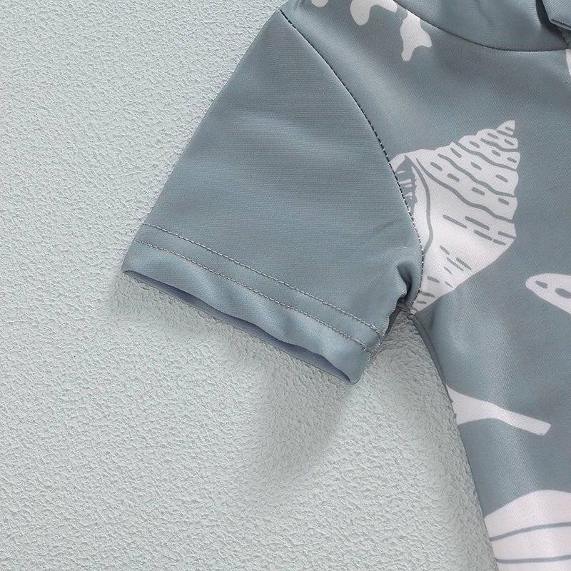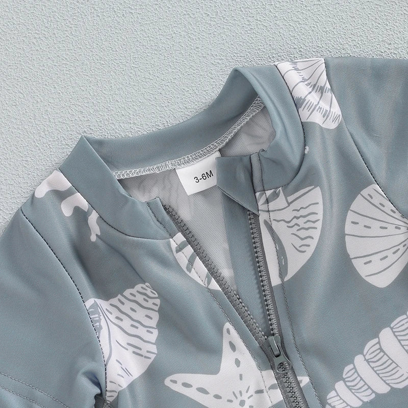 Baby boy swimwear, monokini swimsuit with sea element prints, adding a fashionable touch. Short sleeves, 1/2 zipper and round neck, easy to put on and take off, perfect for summer.