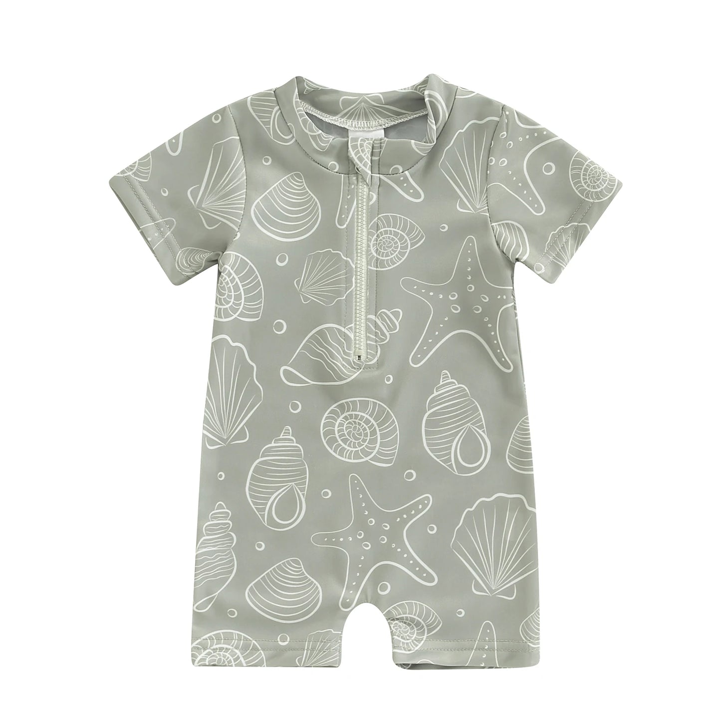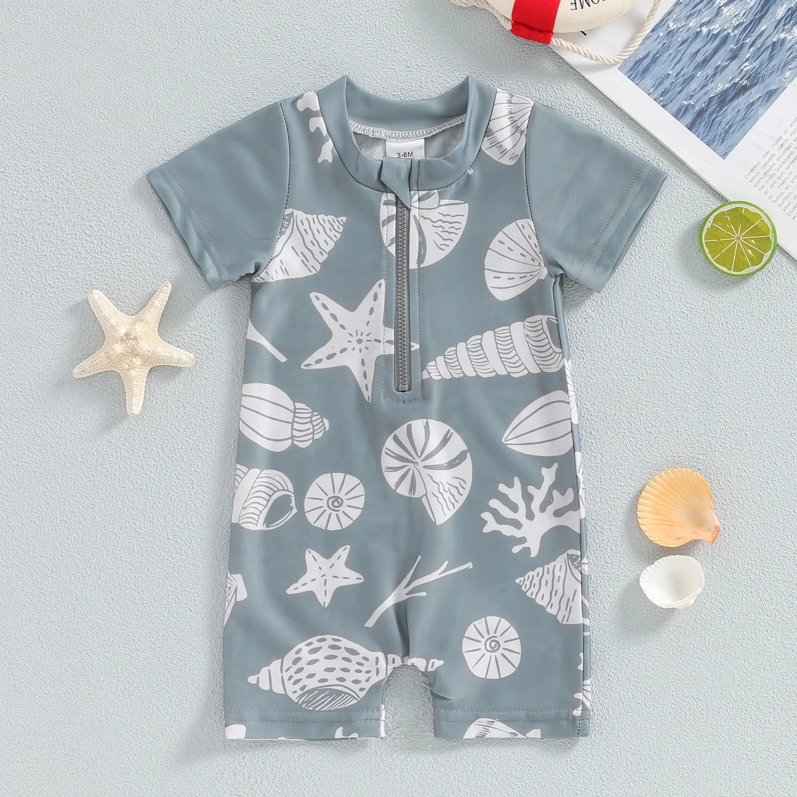 0-3Y Infant Baby Boys Summer Swimwear Cute Sea Element Prints Zipper Short Sleeve Swimsuit Beachwear