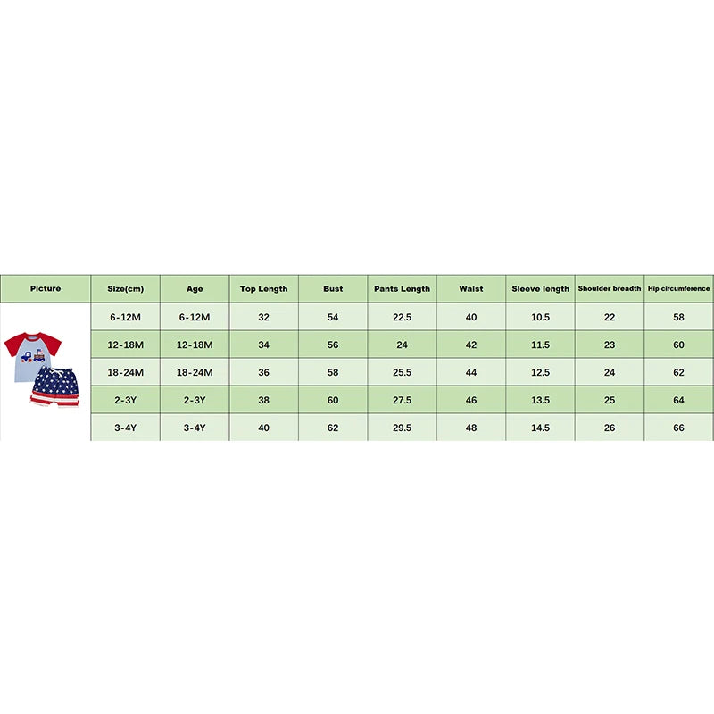 6-12M Tops Length: 13.39 Bust: 21.26 Sleeve: 6.1 Pants Length: 9.25 Waist: 15.75 Hip: 23.62 Advised Age: 6-12 Months