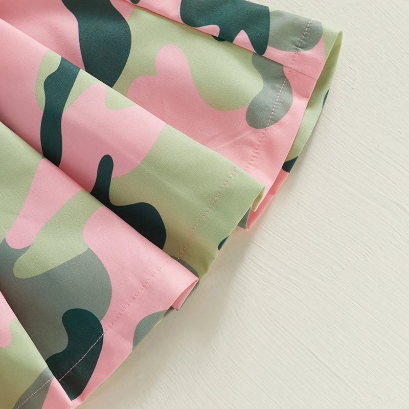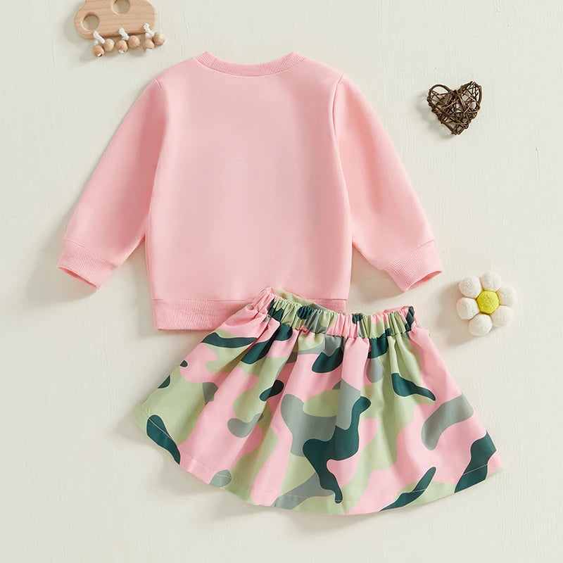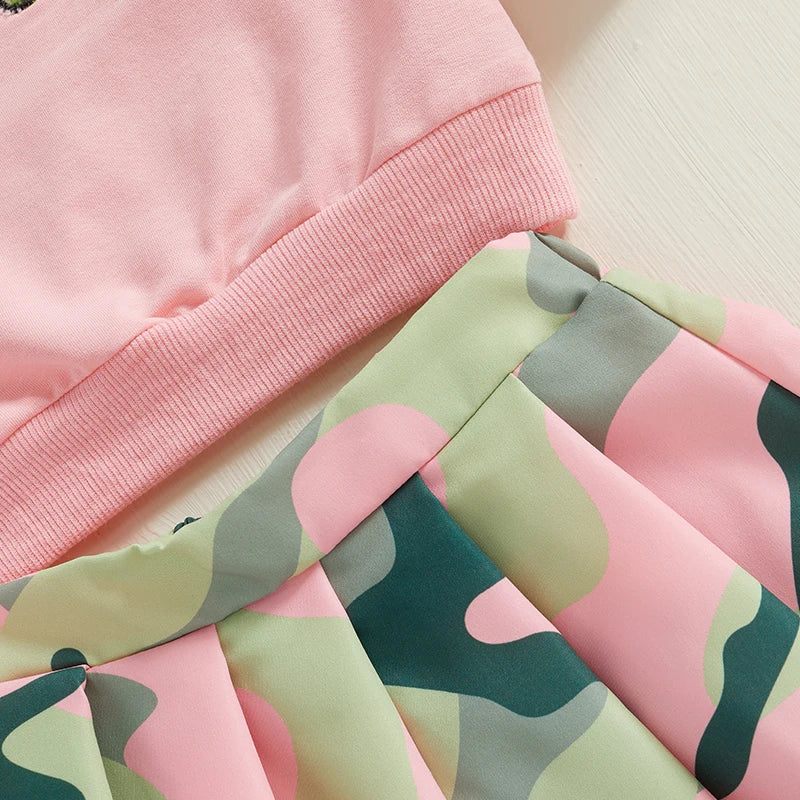 2-Piece Little Girls Set Long Sleeve Letter Sweatshirt A-Line Pleated Skirt Camouflage Outfits