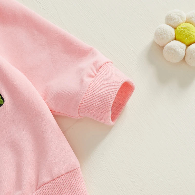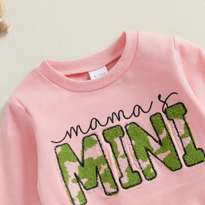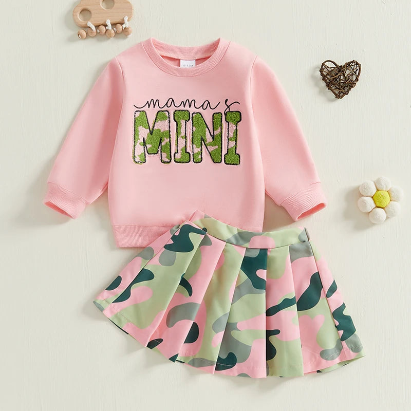 0-4Y Girls Set Long Sleeve Letter Embroidery Sweatshirt Camouflage A-Line Pleated Skirt