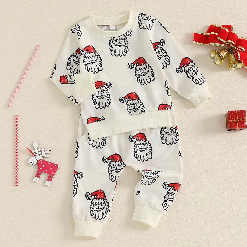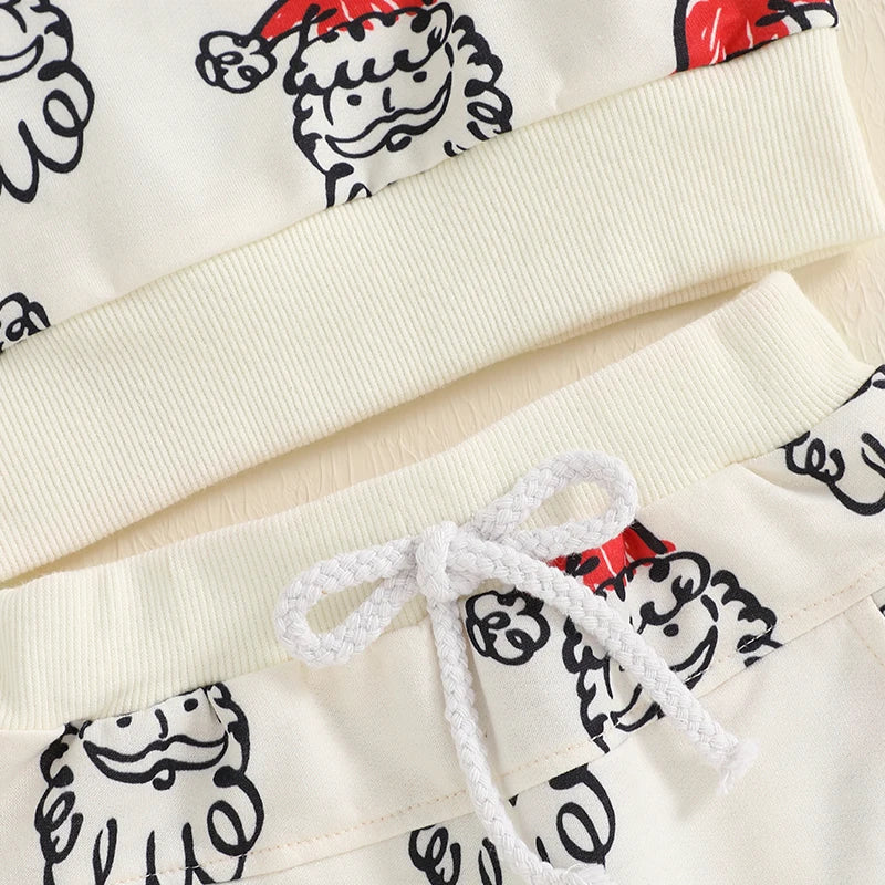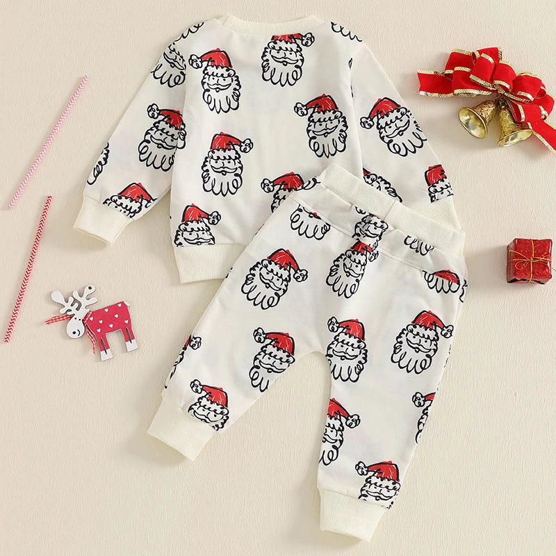 Toddler Boy Christmas Outfit, Santa Claus Print Long Sleeve Sweatshirt Elastic Waist Pants 2 Piece Set