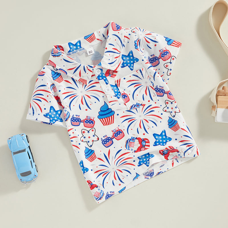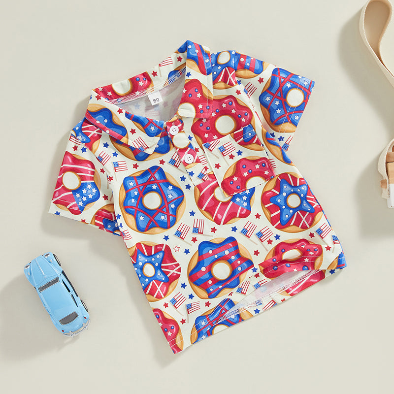 0-4Y Toddler Kids Boys T Shirt Short Sleeve Eagle/Donut/Bull/Fireworks Print Pullover Tops for Independence Day