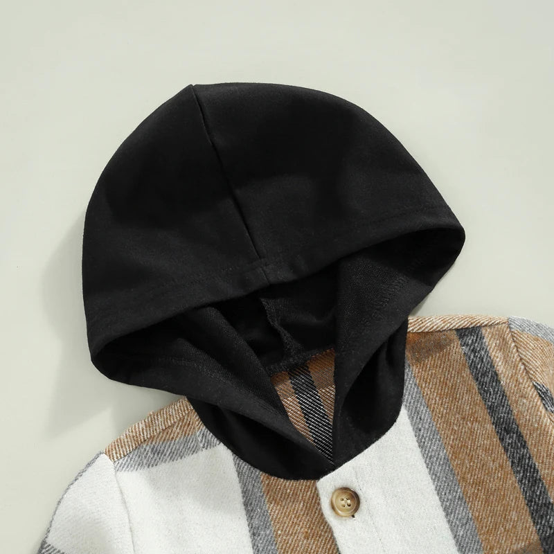1-6Y Autumn Causal Kids Boys Clothes Sets 2pcs Plaid Printed Patchwork Hooded Long Sleeve Jacket and Trousers