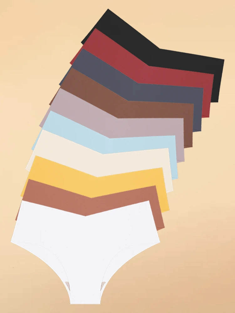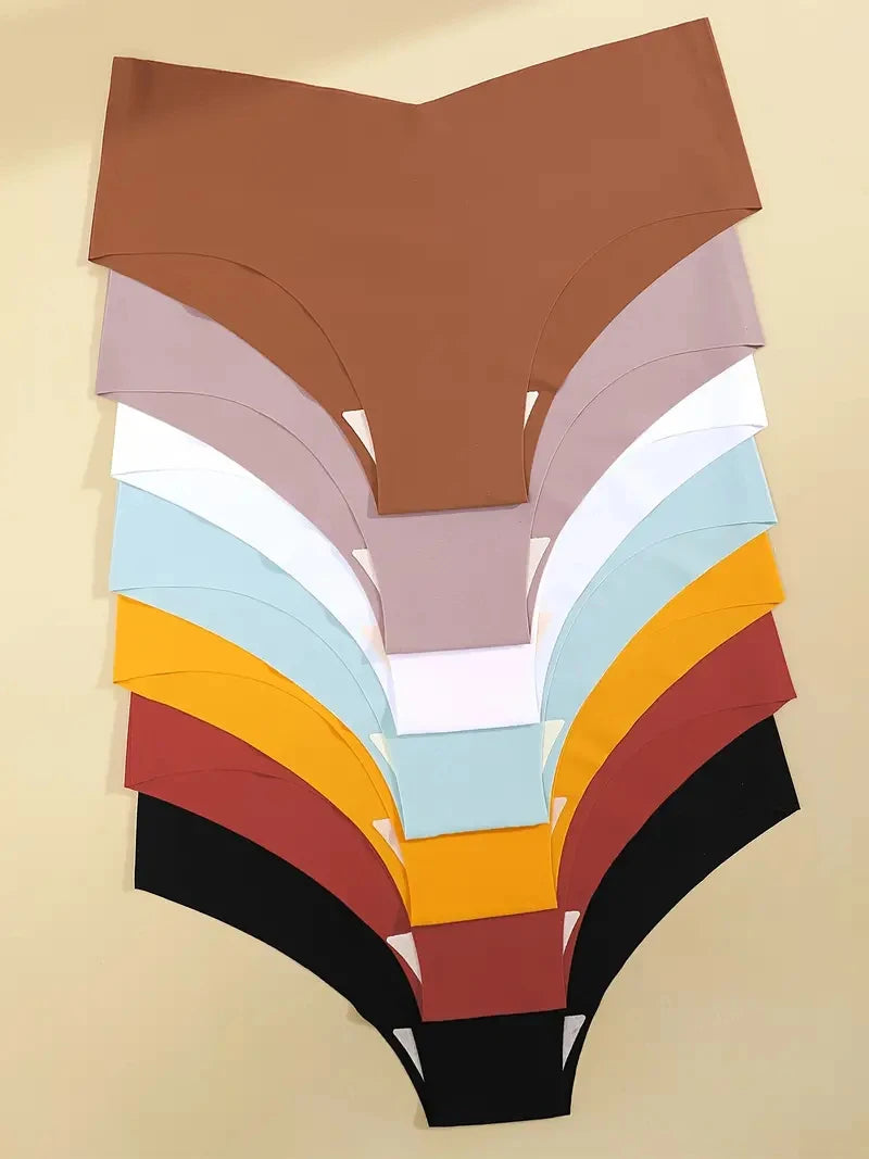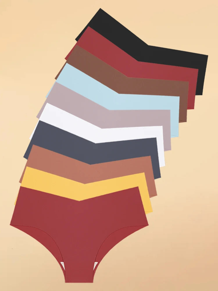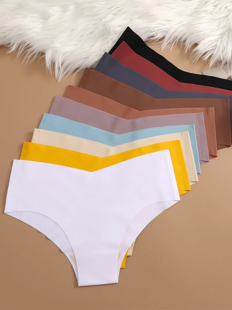 10pcs Women's Panties Seamless Underwear Ultra-thin Solid Briefs V-Waist Silk Lingerie