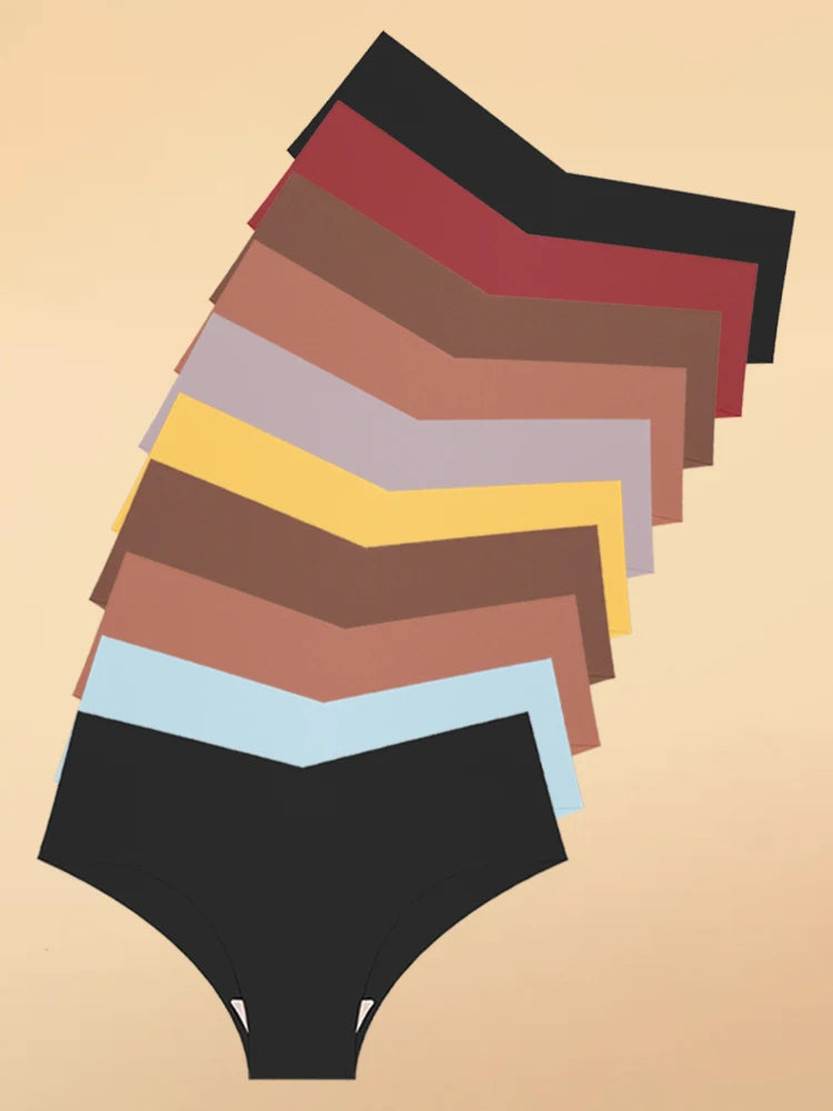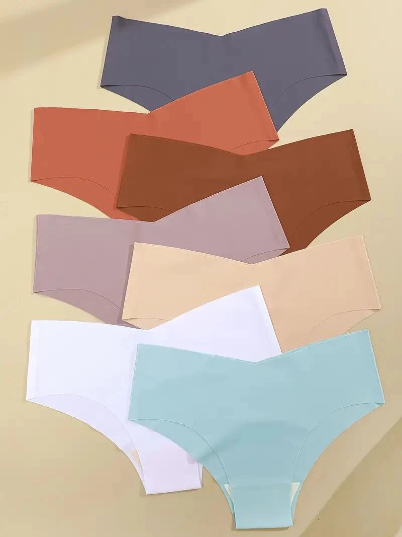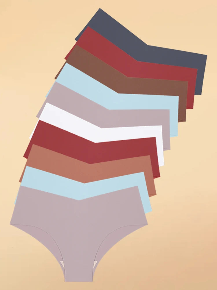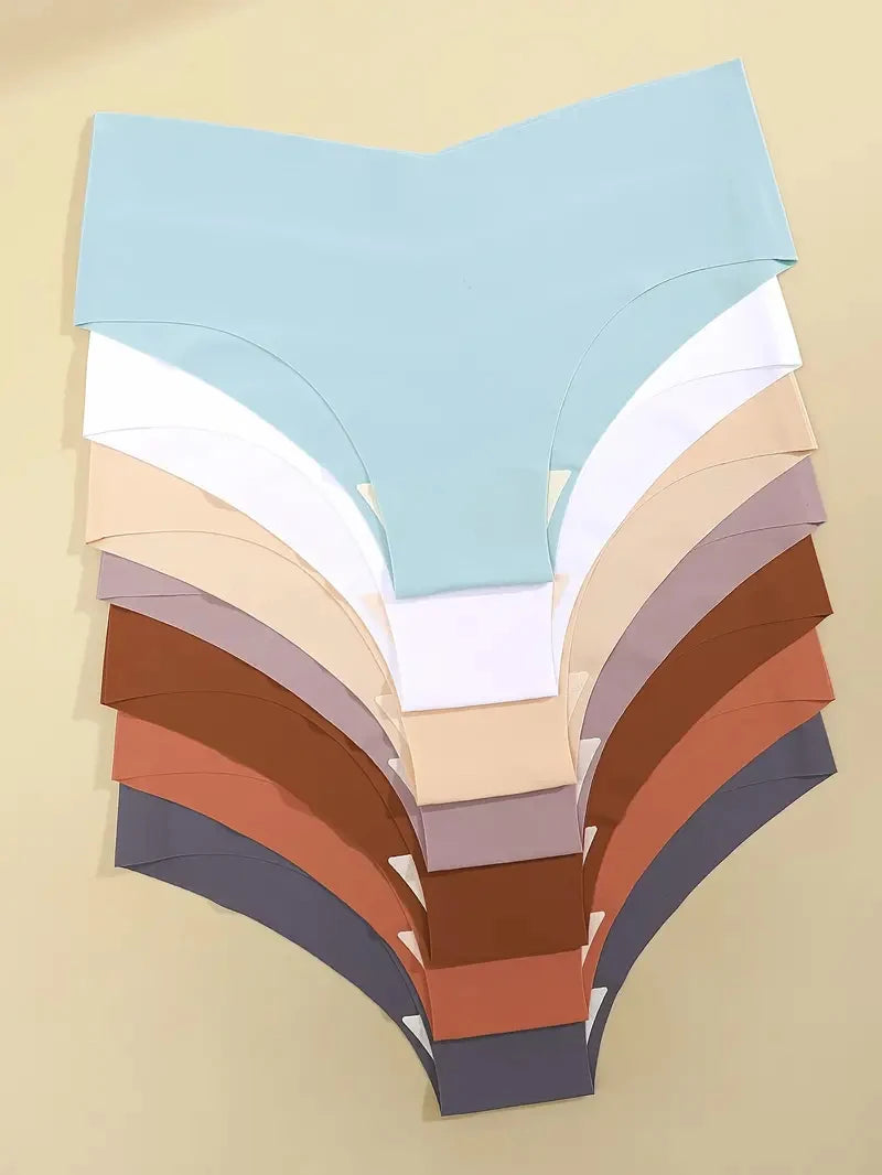 10pcs Women's Panties Seamless Underwear Ultra-thin Solid Briefs V-Waist Silk Lingerie