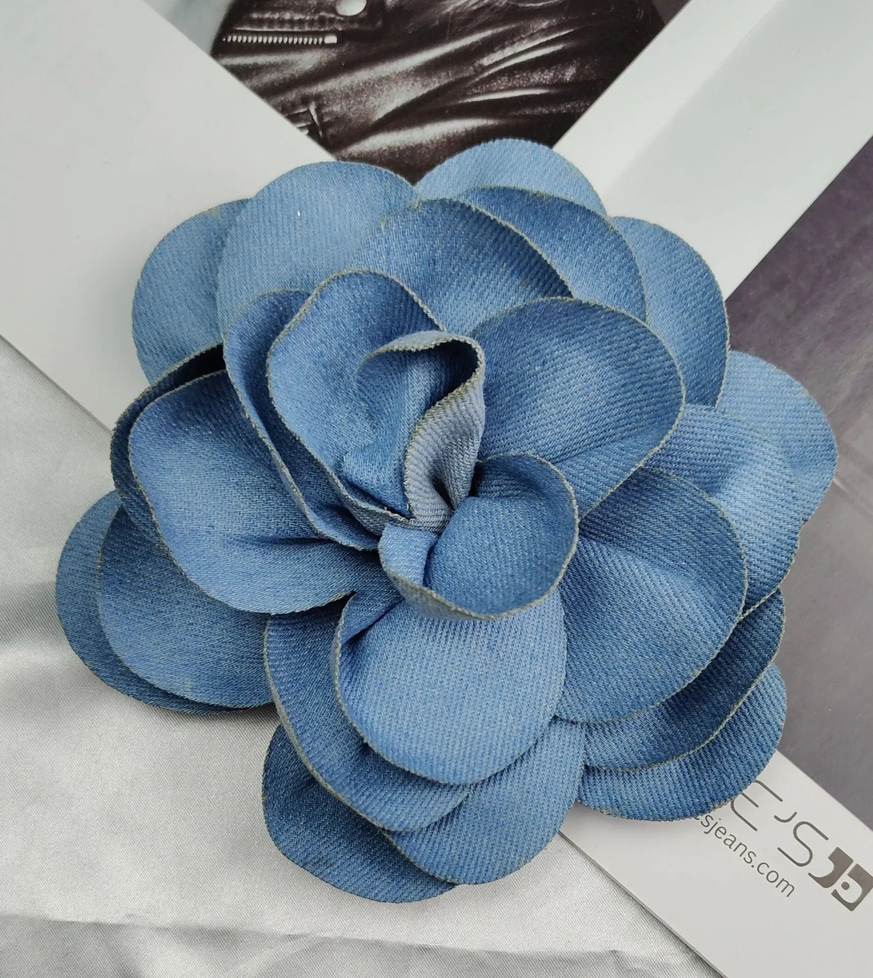 Handmade Denim Rose Flower Brooch - 15cm Fashion Corsage Lapel Pin