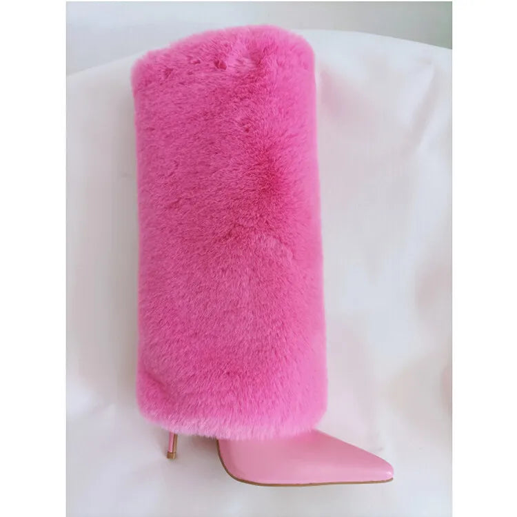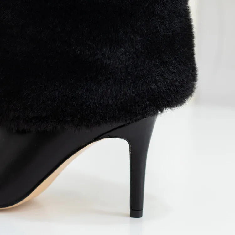 Women's Wedge Leather Mid-Calf Boots - 10cm Heel Metal Buckle Boots