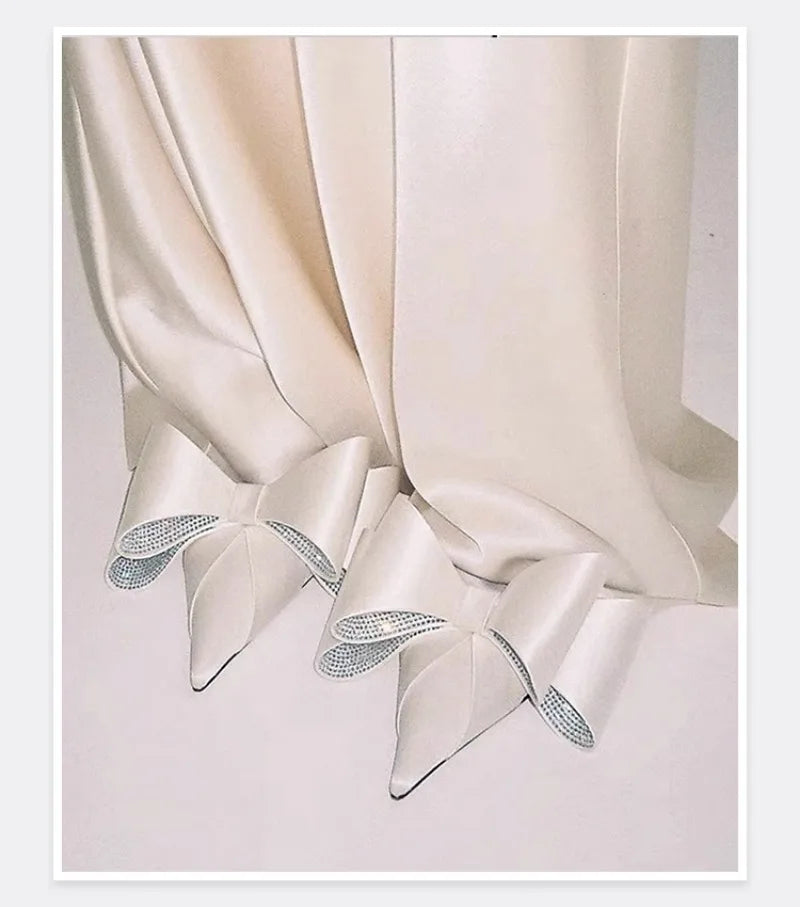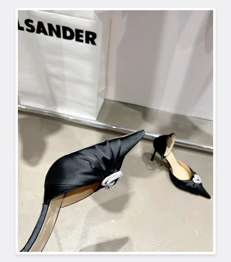 Perfect for bridesmaids, birthday parties, and special celebrations, these stunning satin pointed heel sandals feature beautiful rhinestone embellishments and a charming bowknot design. Available in three heel heights (6cm, 8cm, 10cm) to suit your comfort and style preferences.