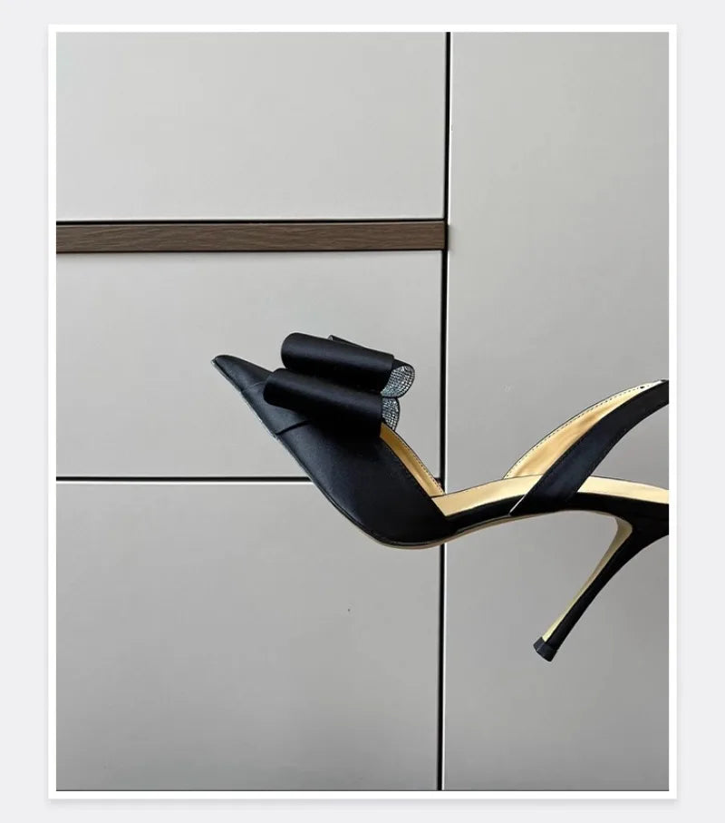 Women's Rhinestone Bowknot Satin Pointed Heel Sandals - Bridesmaid Party Shoes
