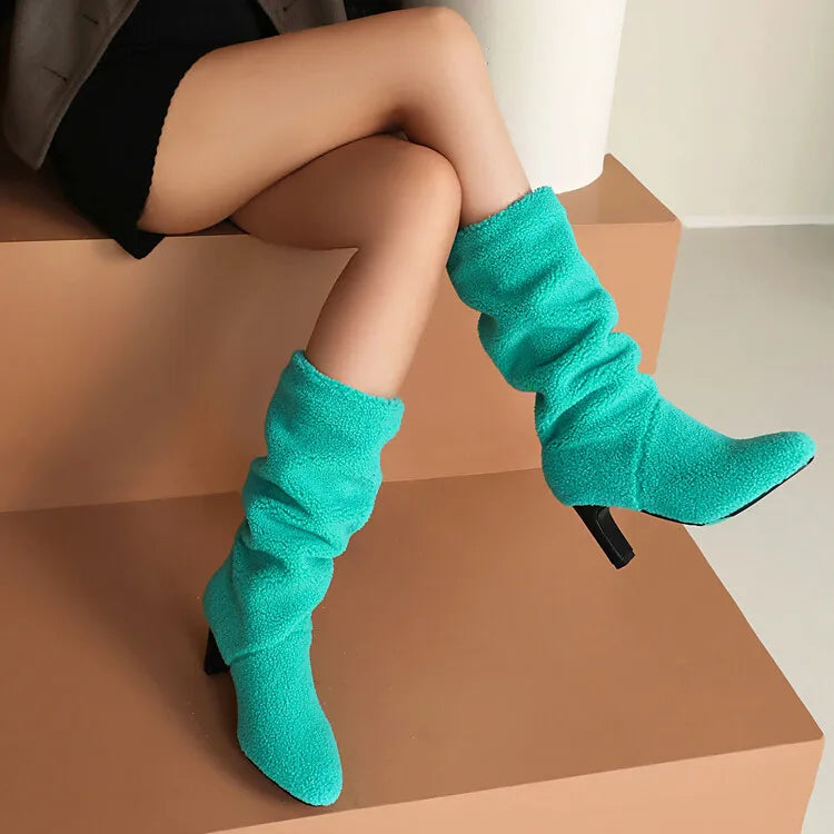 Stay warm and stylish this winter with these luxurious knee-high boots featuring soft faux lamb wool lining and a comfortable 7cm square heel. The plush interior keeps your feet cosy while the elegant design ensures you look fabulous all season long.