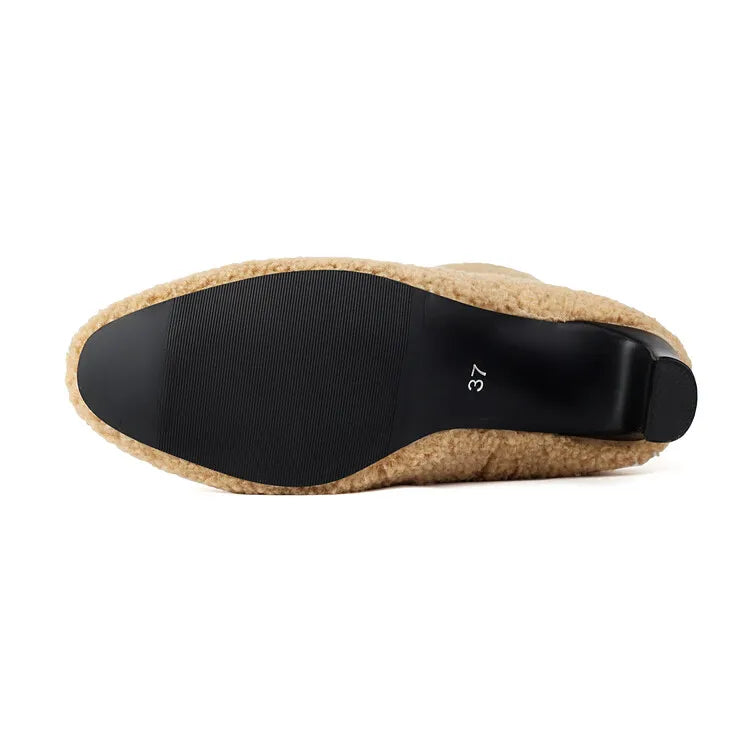 Faux Fur Lined Knee High Boots - 7cm Square Heel Winter Boots