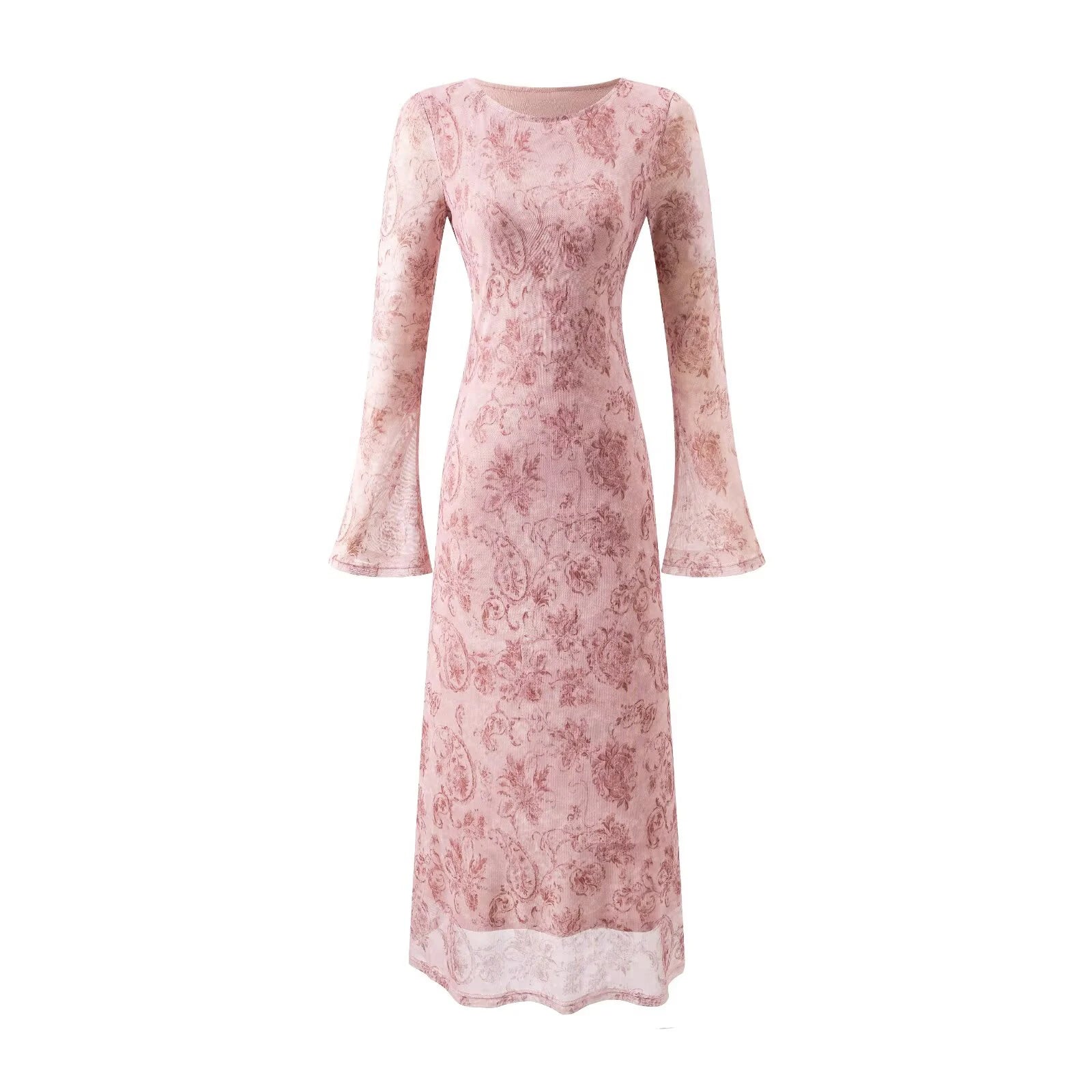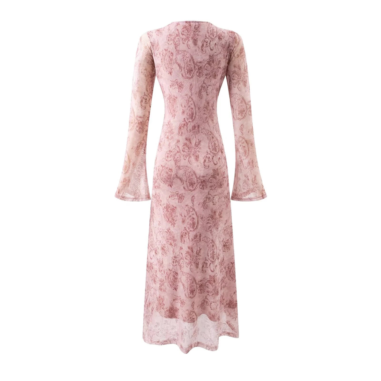 Embrace timeless French elegance with this stunning retro-inspired dress that combines vintage charm with modern sophistication. Featuring beautiful printed details and flattering trumpet sleeves, this mesh dress is designed to make you feel effortlessly chic and confident.