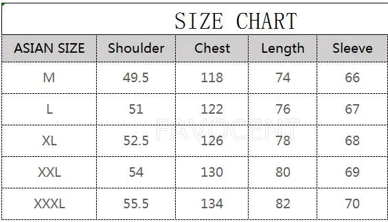 | UK Size | US Size | EU Size | Chest (cm) | Shoulder (cm) | Length (cm) | Sleeve (cm) |