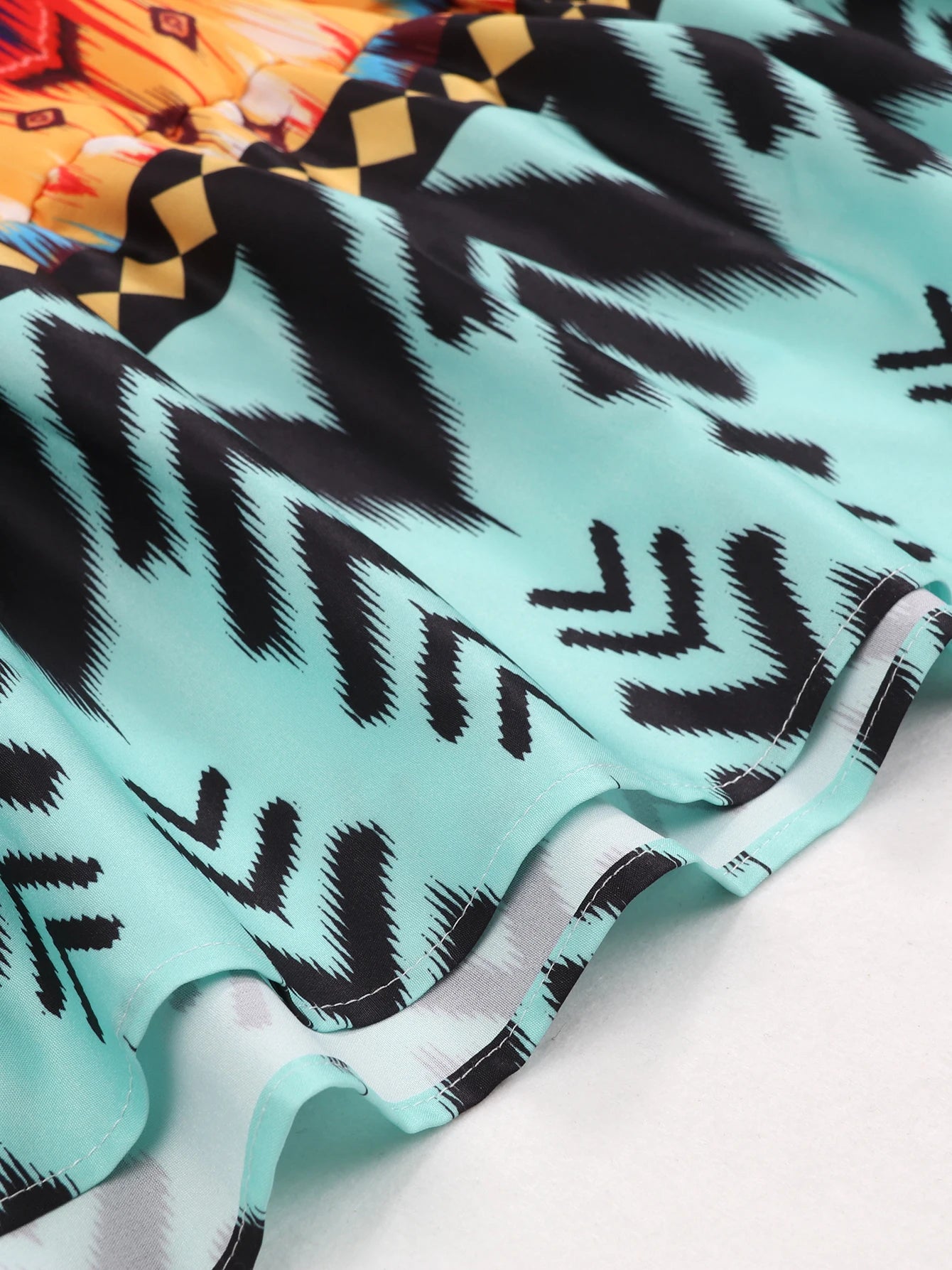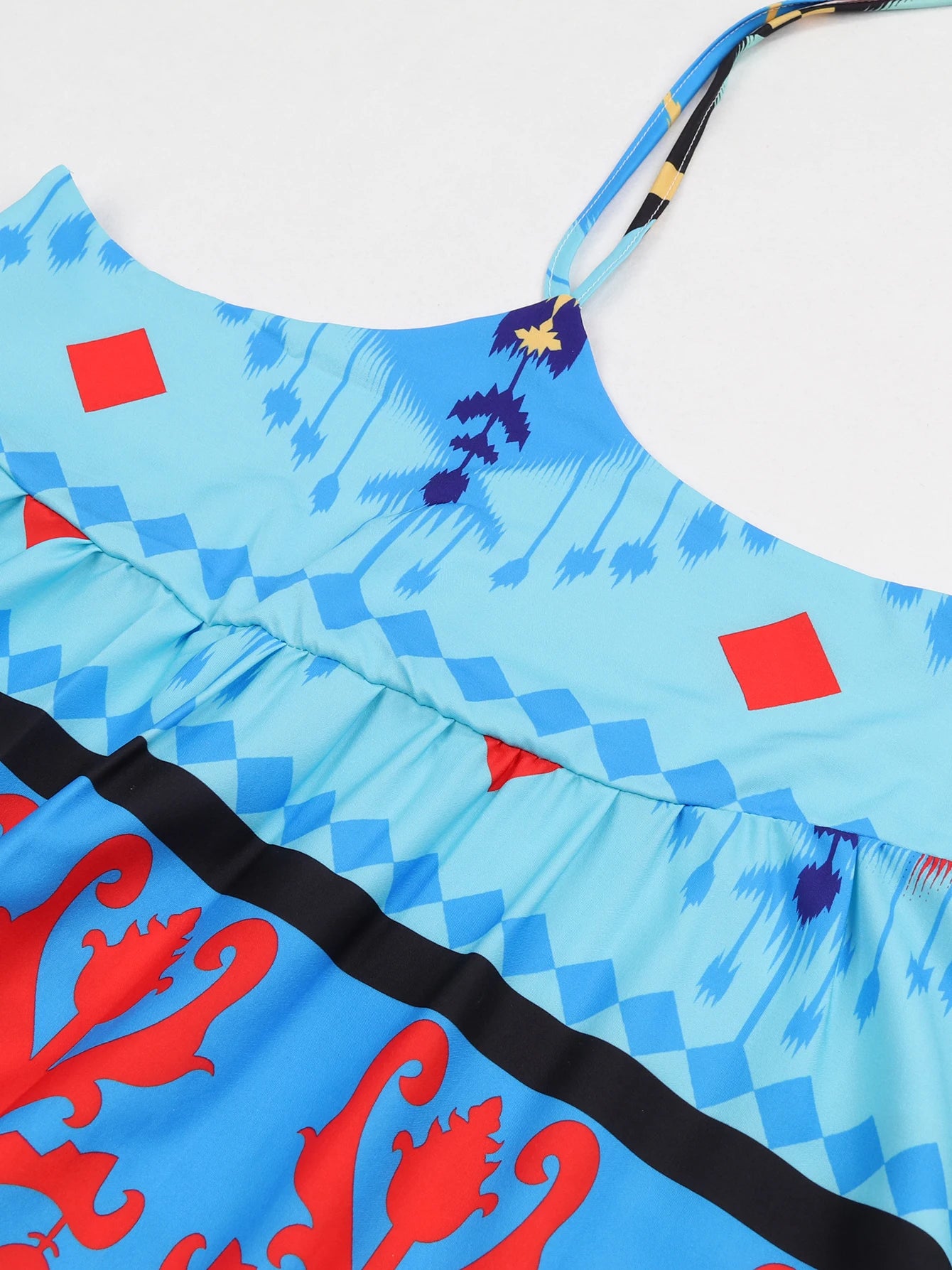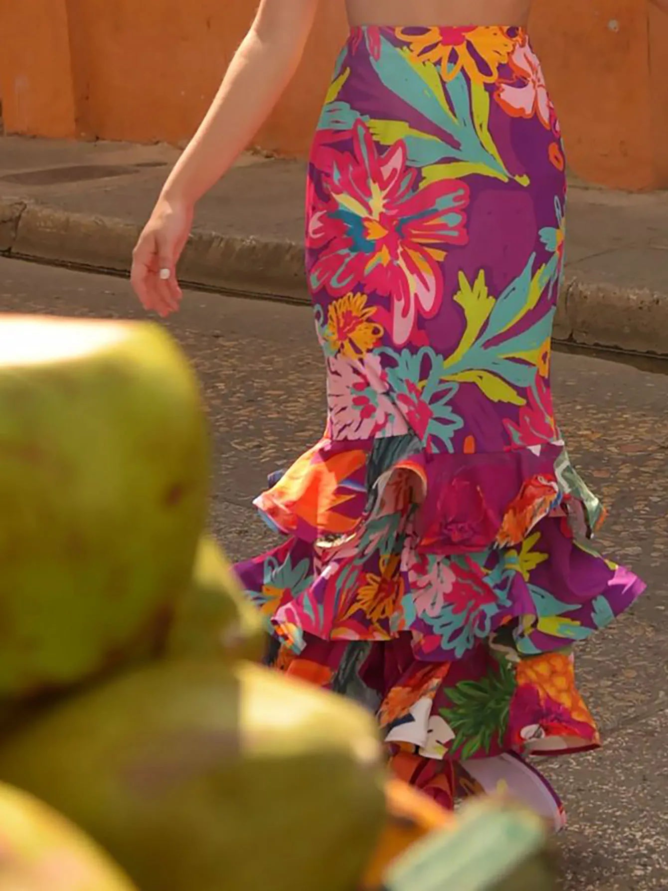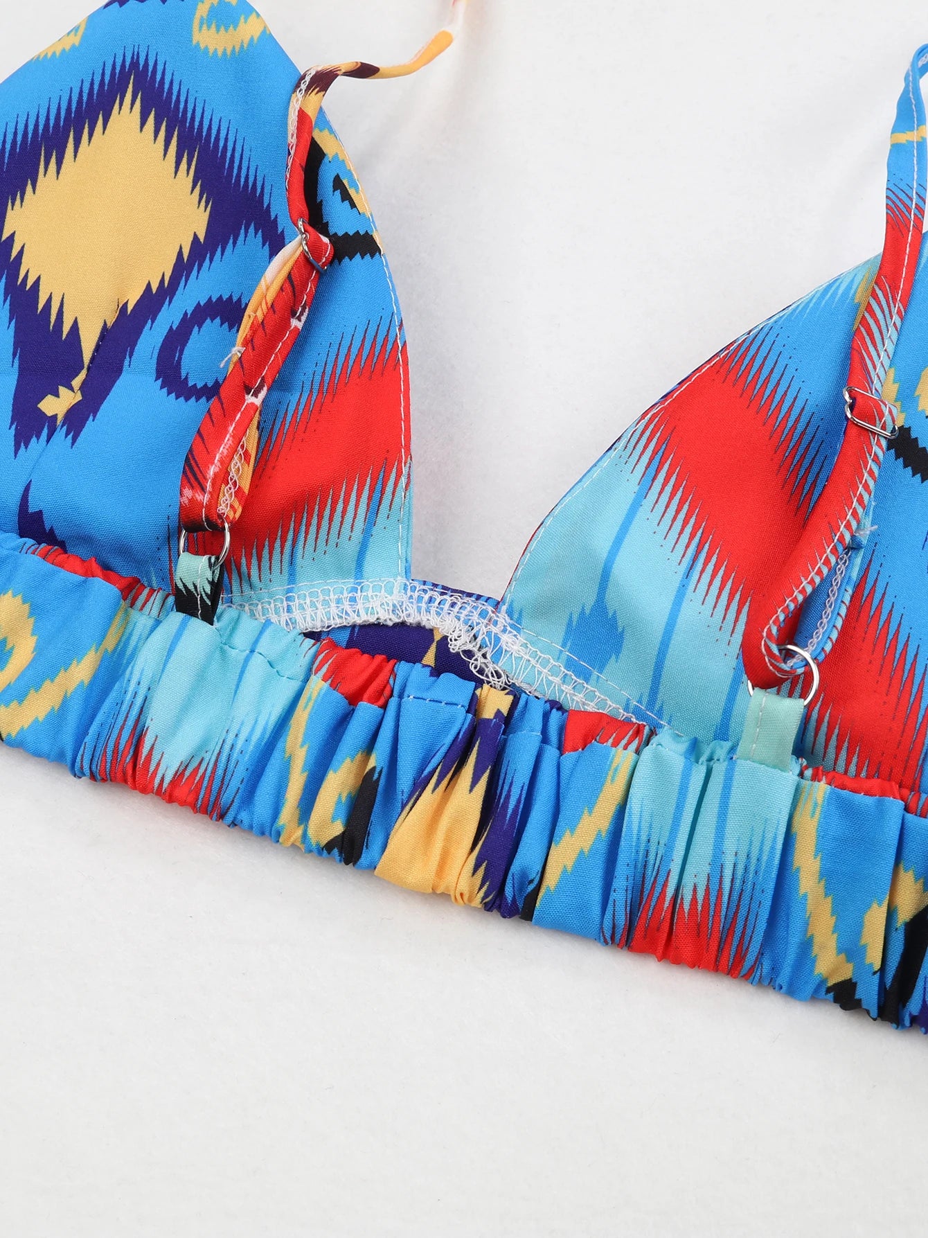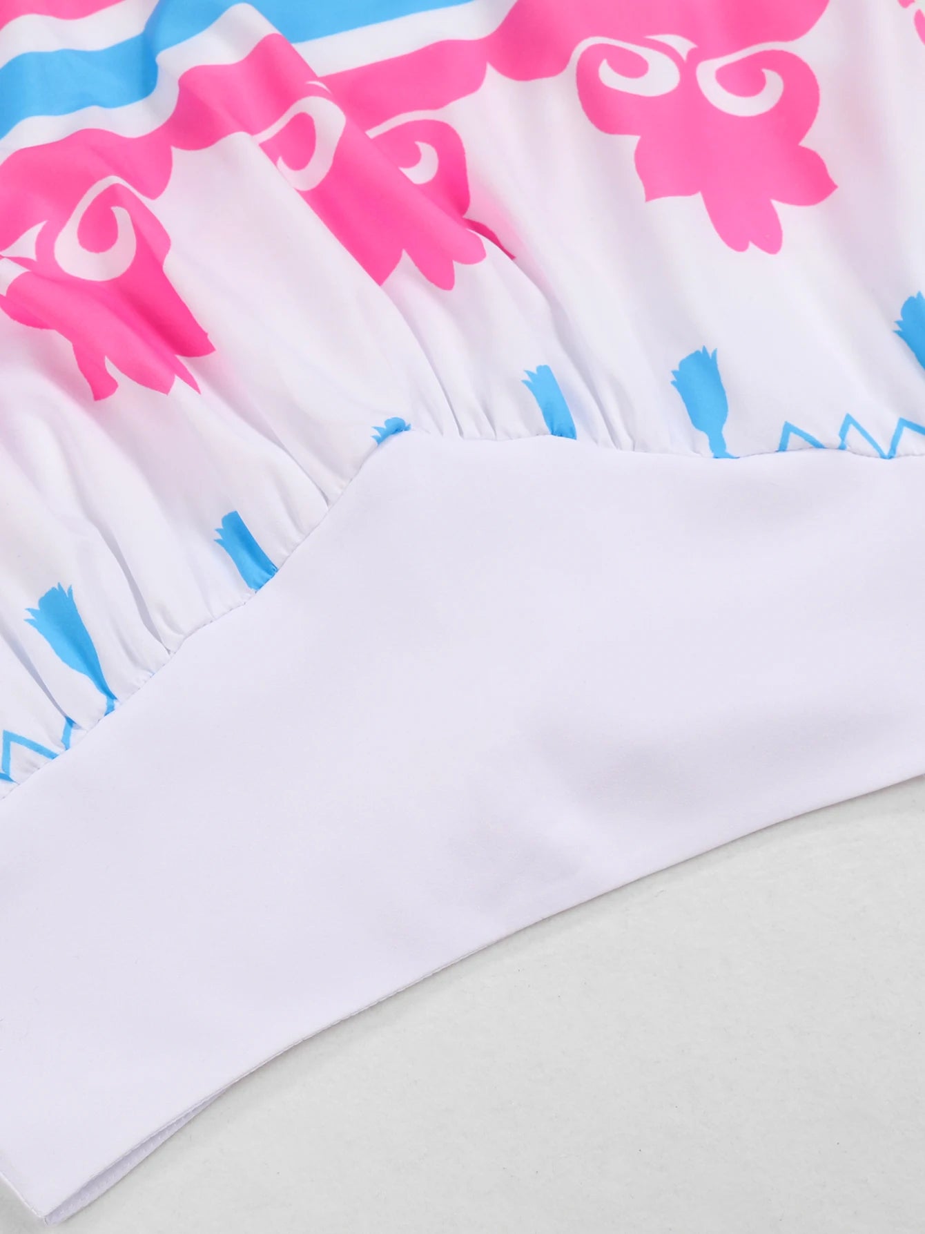 Women's Print Beach Two Piece Skirt White Bra High Waist A-line Long Skirt Beach Set
