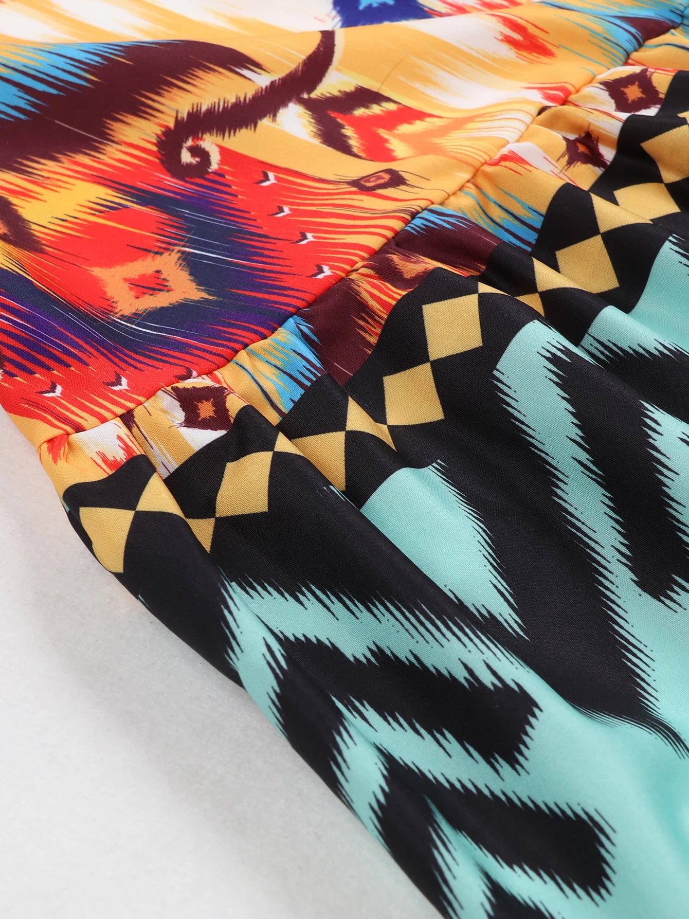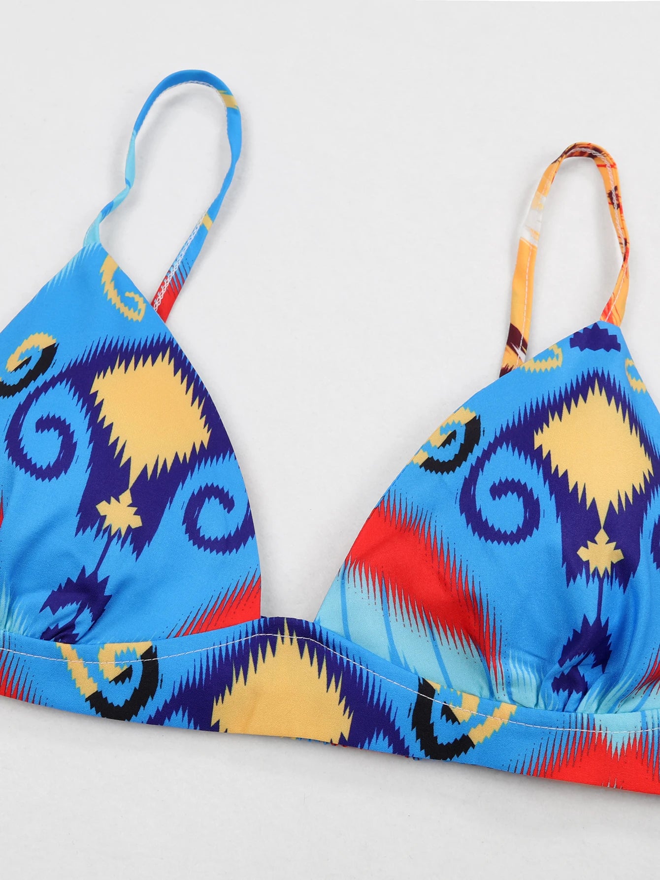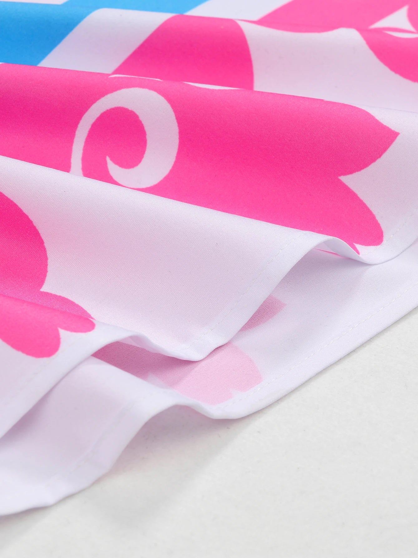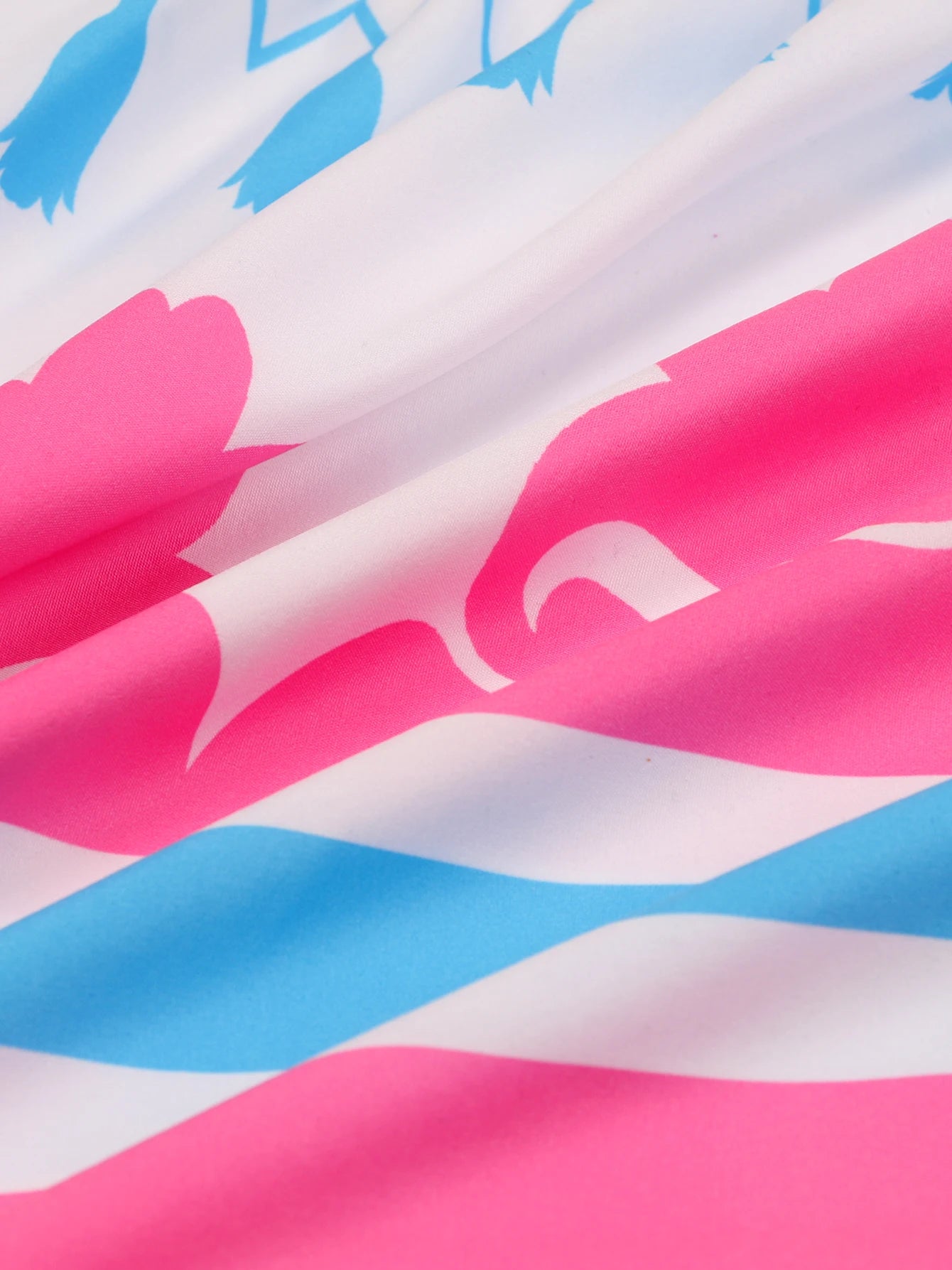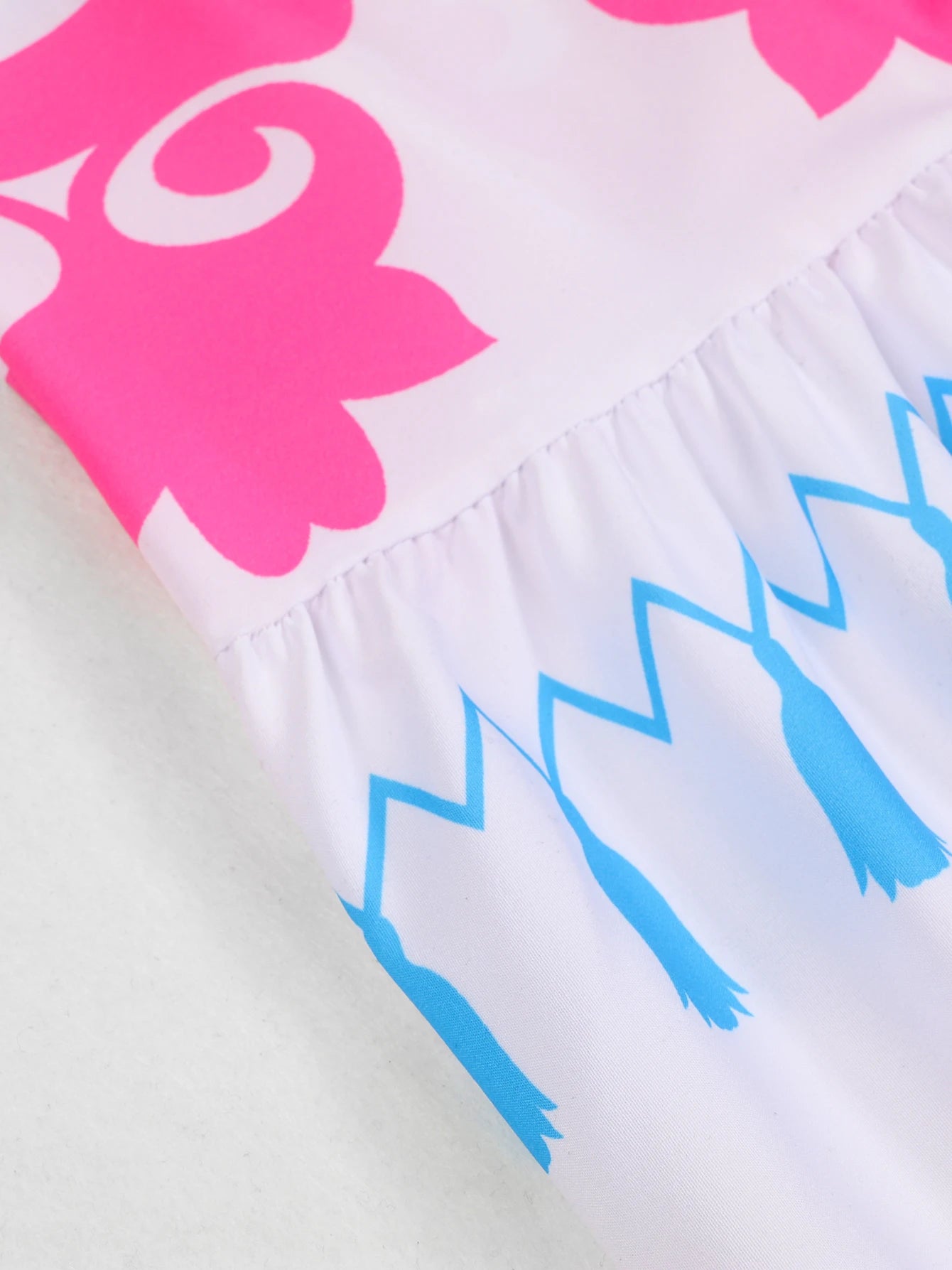 Women's Print Beach Two Piece Skirt White Bra High Waist A-line Long Skirt Beach Set