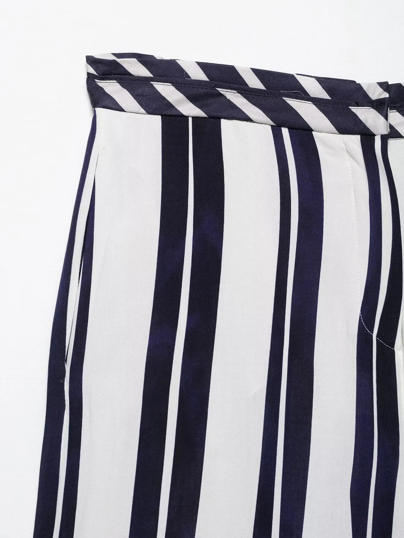 Discover the perfect balance of comfort and sophistication with this stunning two-piece set. The striped collar top features a flattering neckline that adds a touch of elegance to your casual wardrobe, while the coordinating mid-waist loose pants provide all-day comfort without compromising on style.