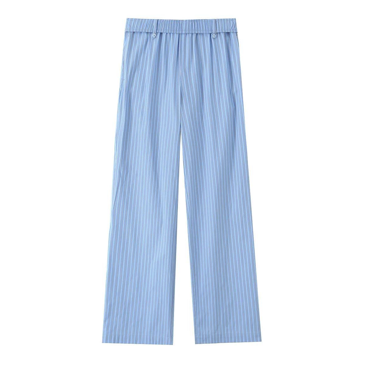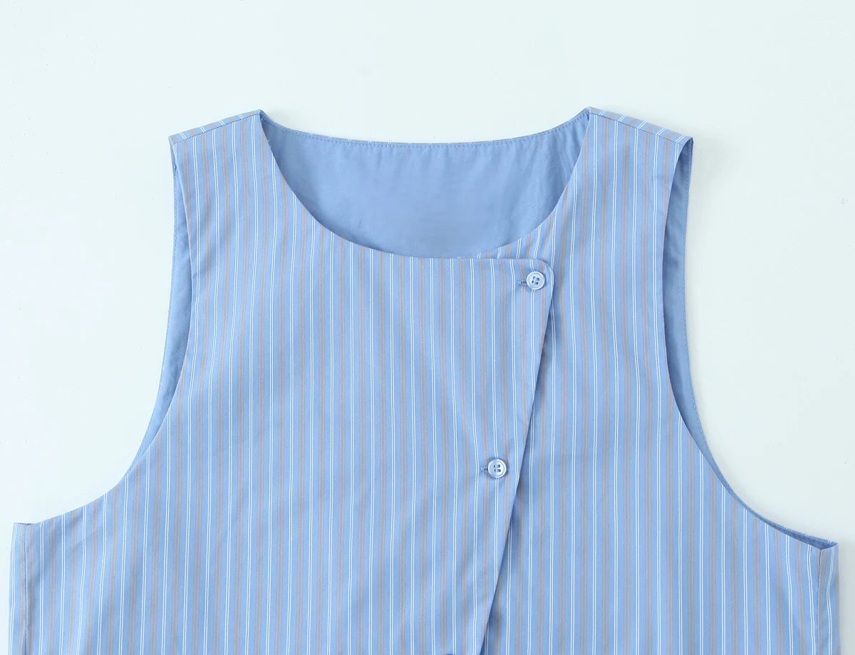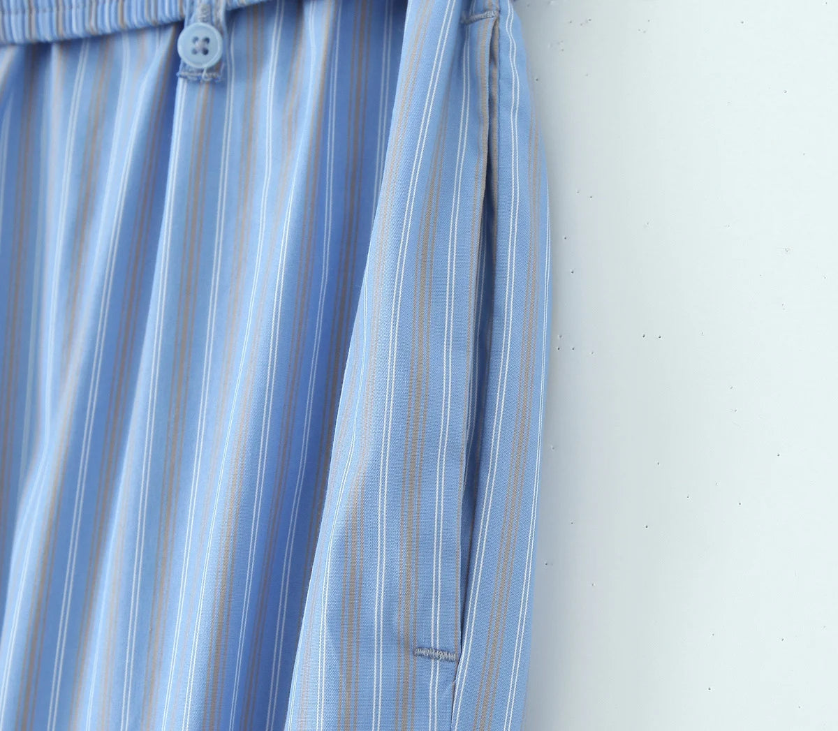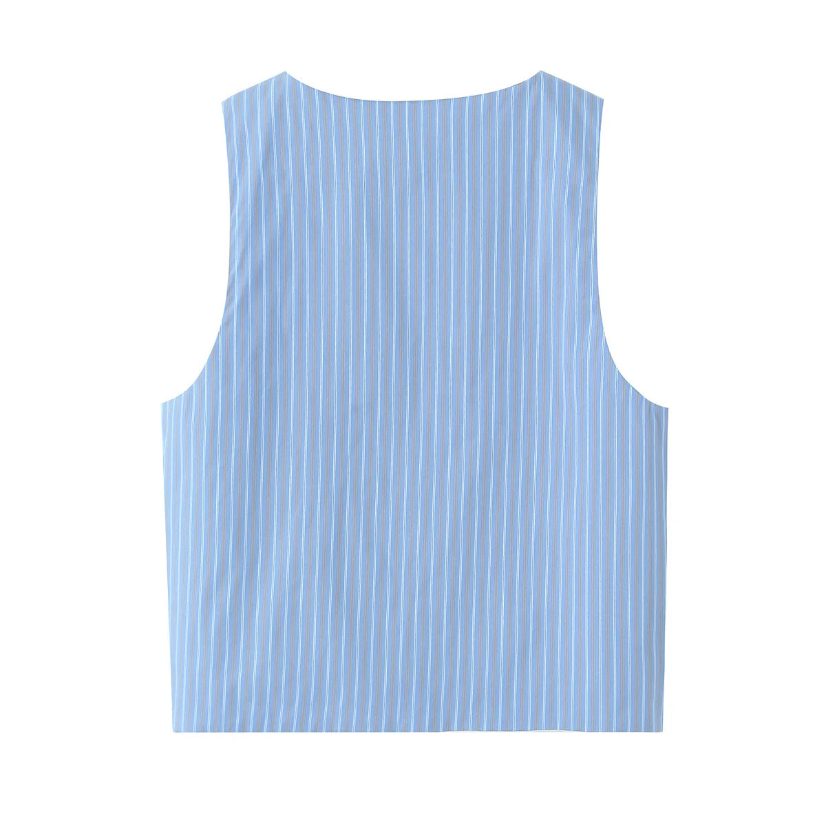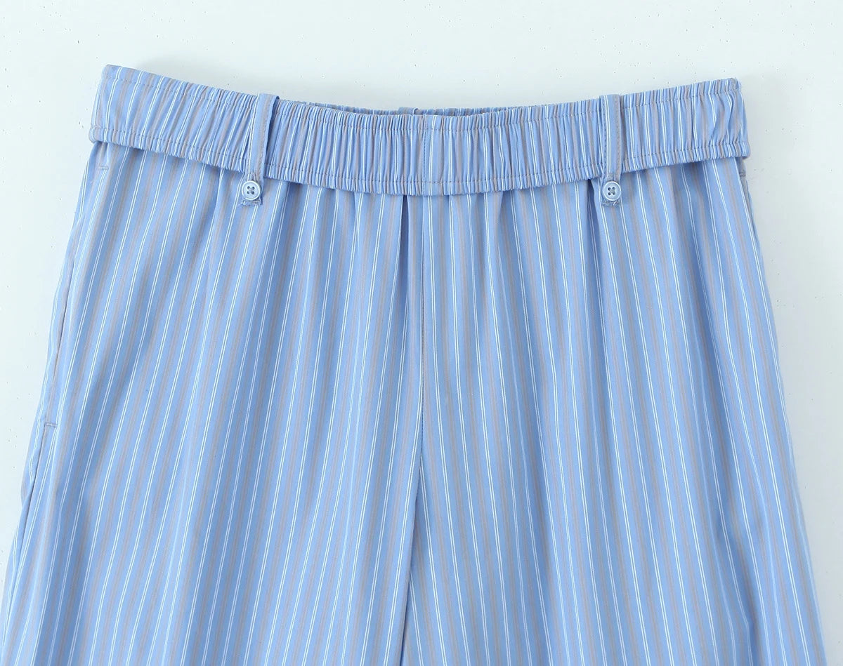 Women's Sense Niche Blue Striped Sleeveless Vest Loose Wide Leg Pants