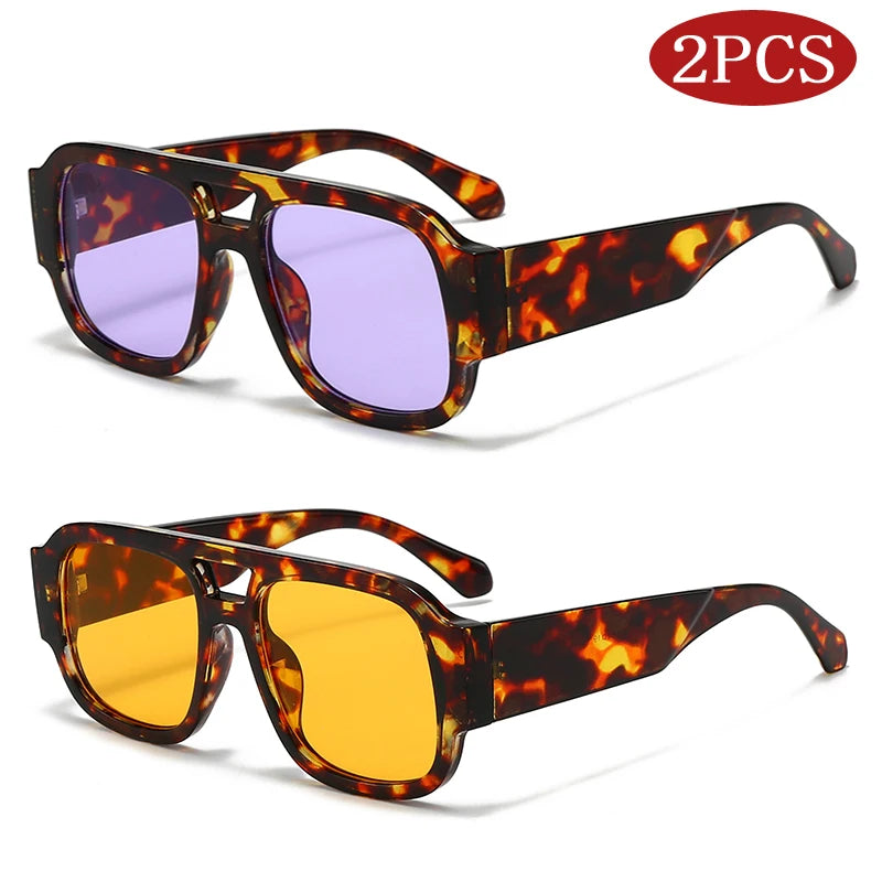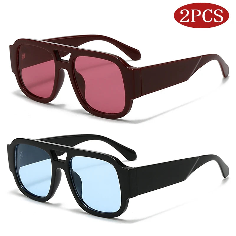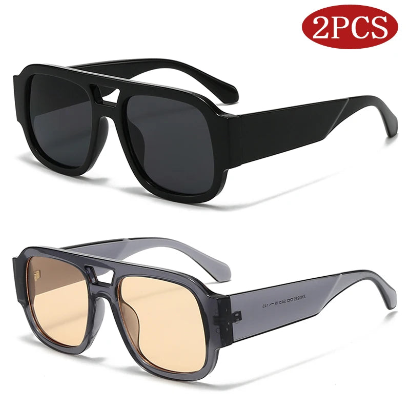 2-Piece Square Sunglasses Set - Large Frame Double Bridge Retro Style
