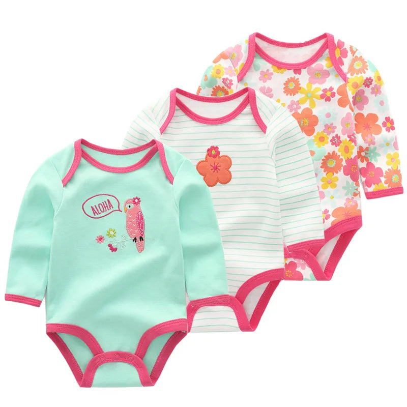 3 Pcs/Lot Baby's Long Sleeve Bodysuits 100% Cotton