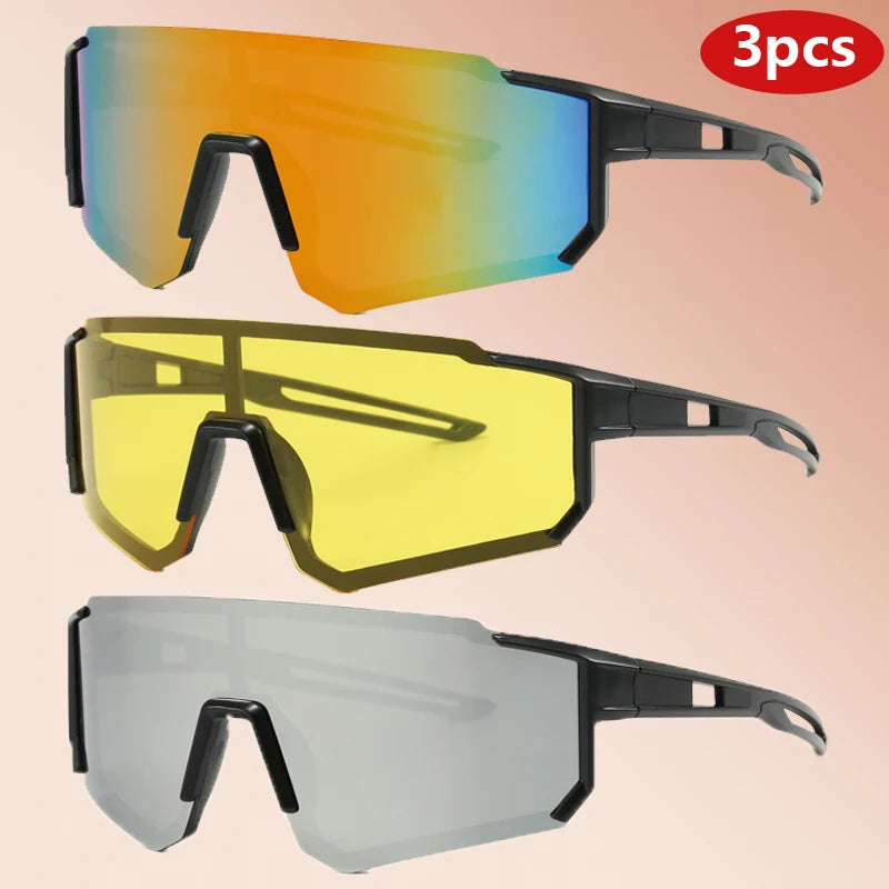 3 Pack Classic Outdoor Sport Sunglasses - Large Frame Unisex Integrated Goggles