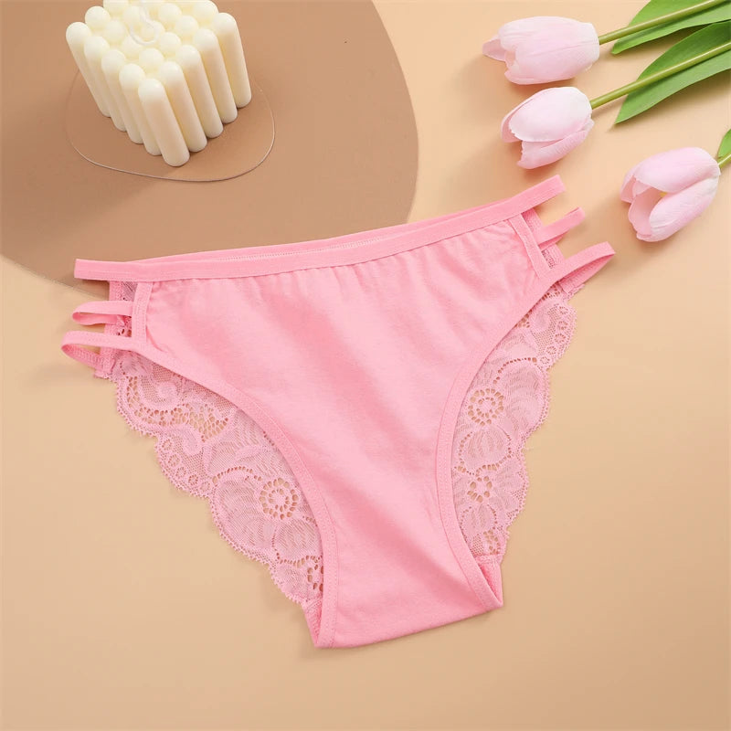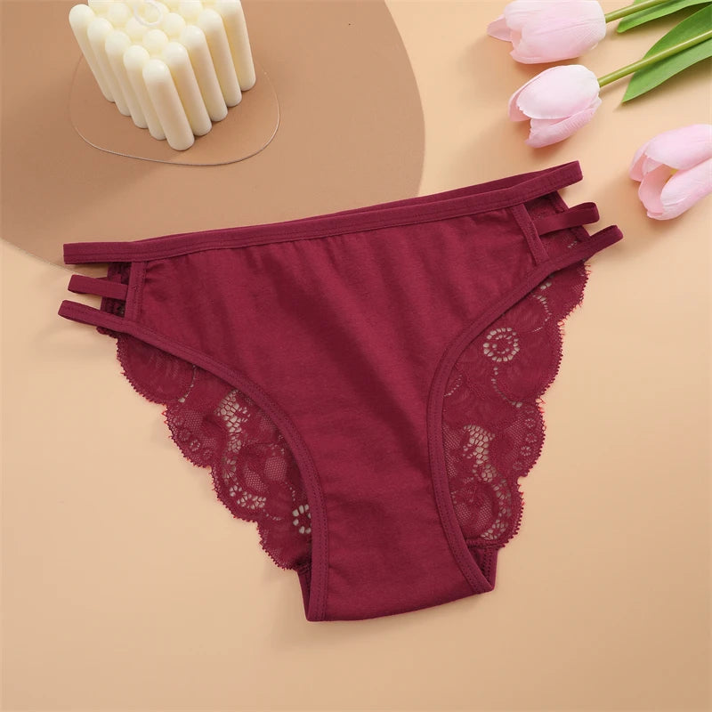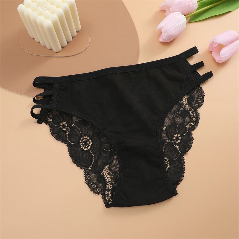 3PCS Women's Lace Floral Triple Belts - Low-Waist Perspective Briefs Soft Lingerie Underwear