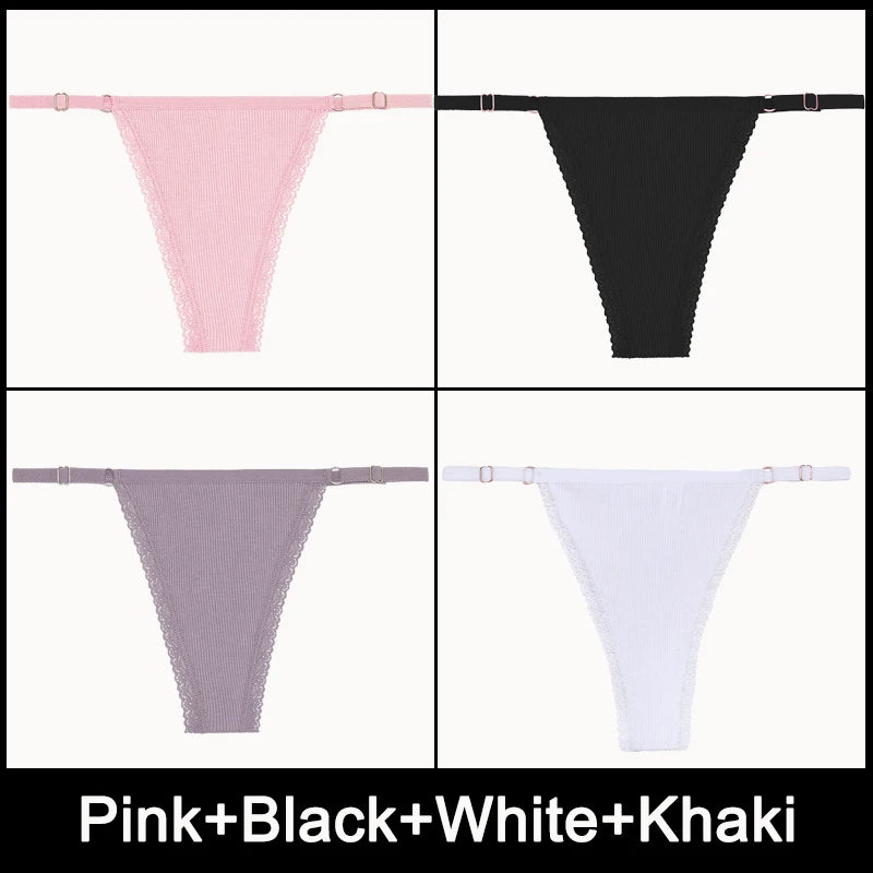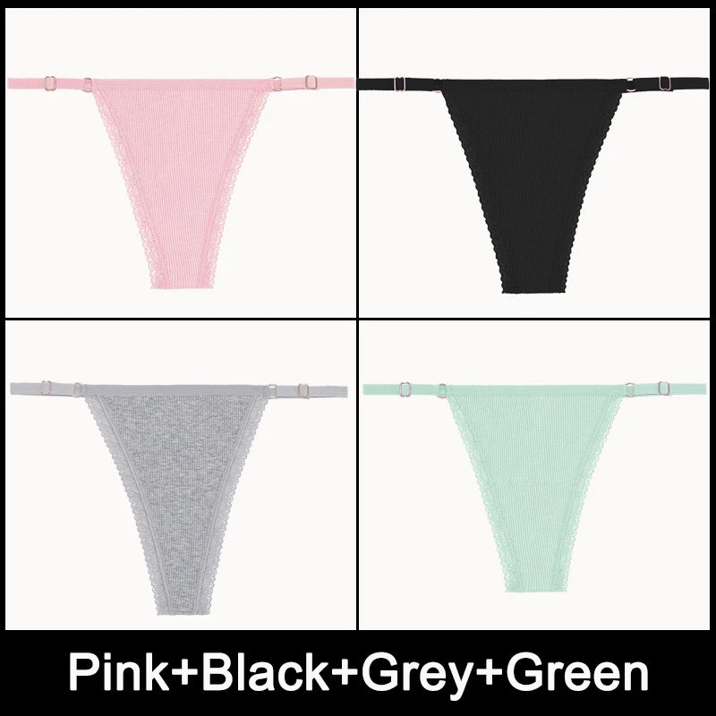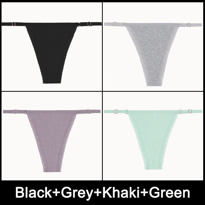 4PCS/Set Adjustable Waist G-string Panties Cotton Women's Underwear Girl Female Pantys Bikini Lady Thongs Lingerie