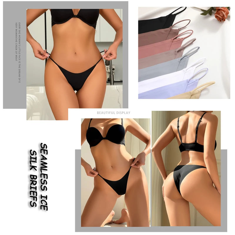 4Pcs/set Ice Silk Underwear Seamless Briefs Panties Thin Strap Lingerie