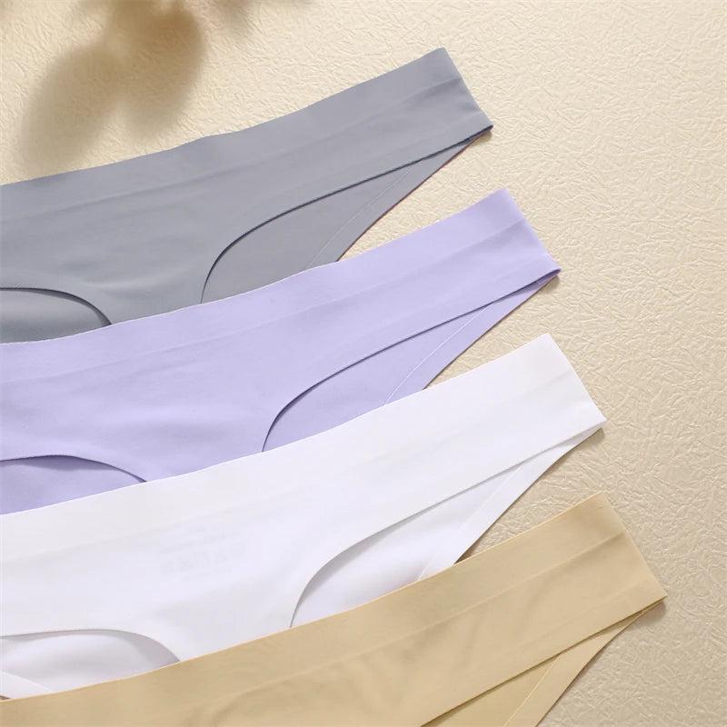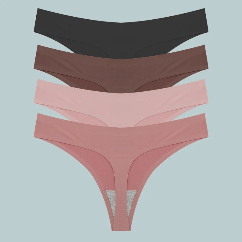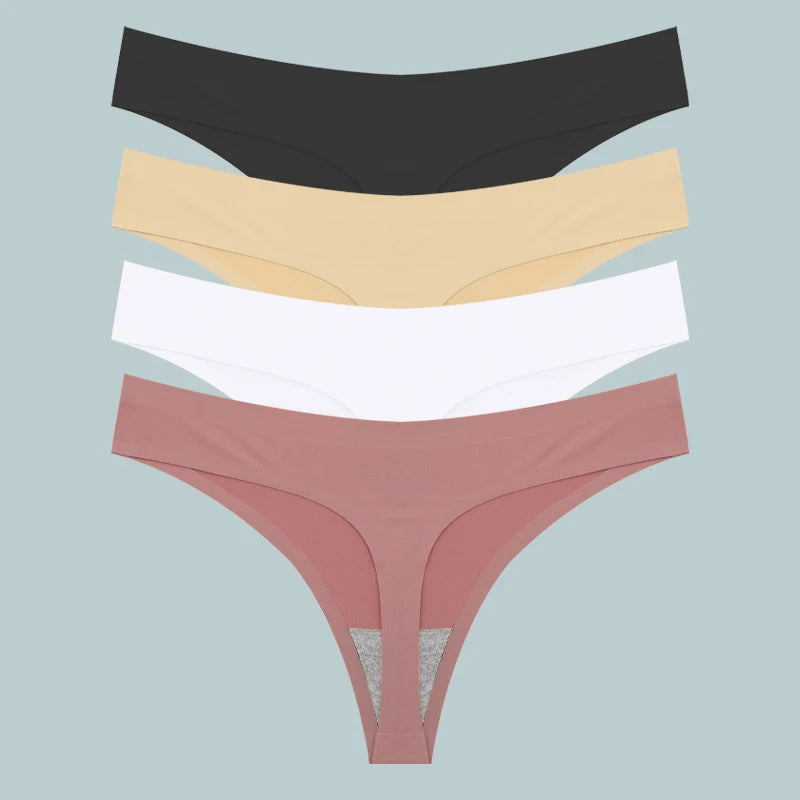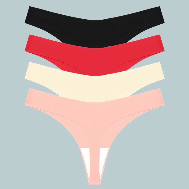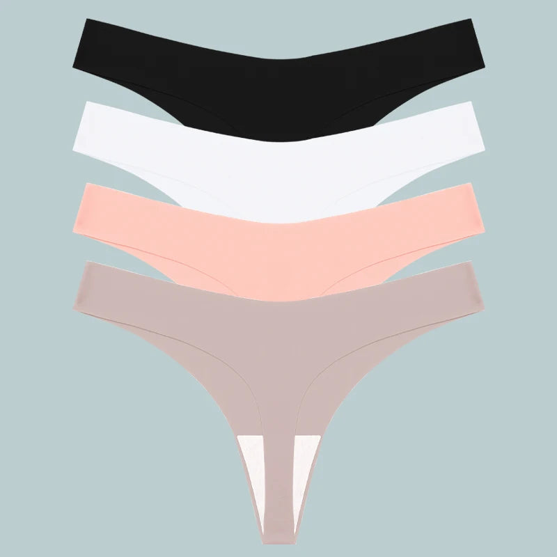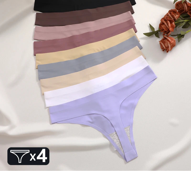 4Pcs Women's Seamless Thongs Breathable Panties Low-Waist Solid Underwear Stretch G-string Invisible T-Back Lingerie