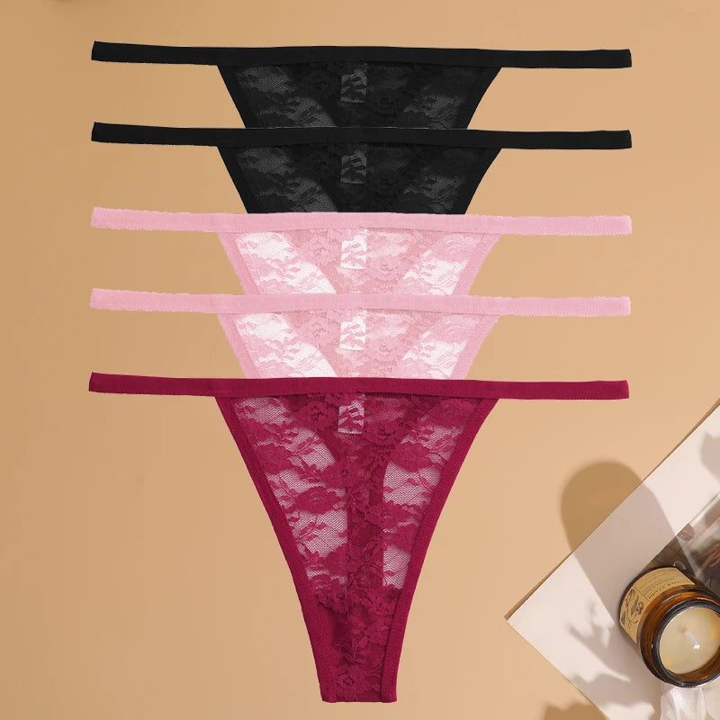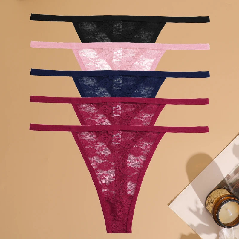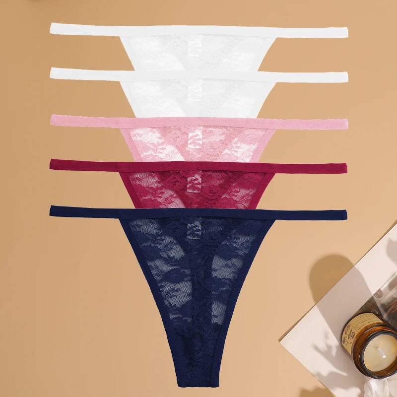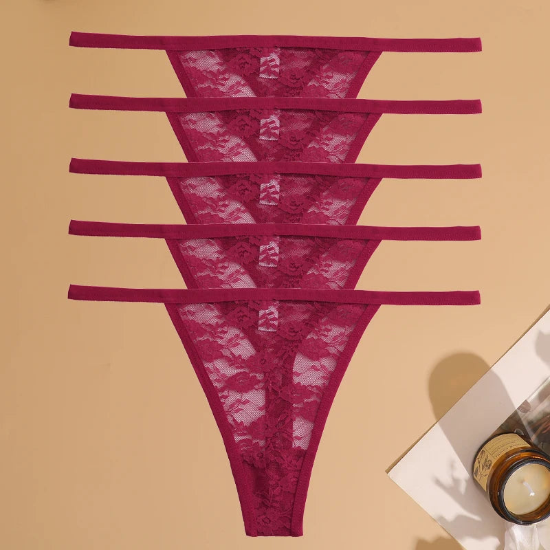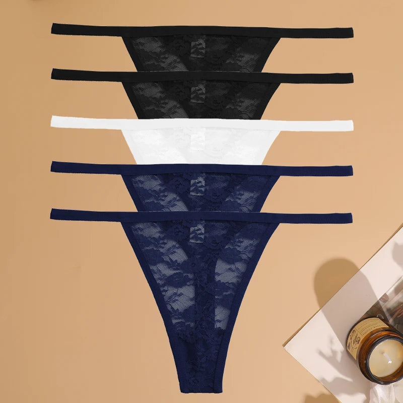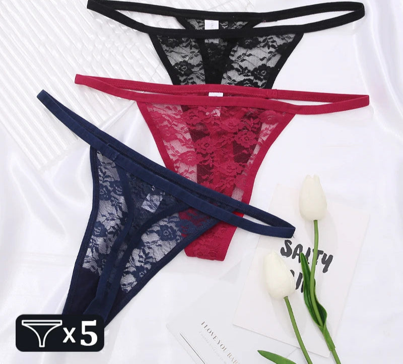 5Pcs Cotton Lace Thongs Hollow Out Floral Underwear Panties Low Waist G-string Comfortable Lingerie