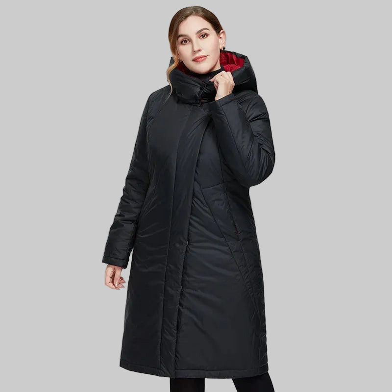 Experience ultimate winter warmth in this luxurious long parka, featuring premium insulation and a fixed hood with elegant fur trim for sophisticated cold-weather style.