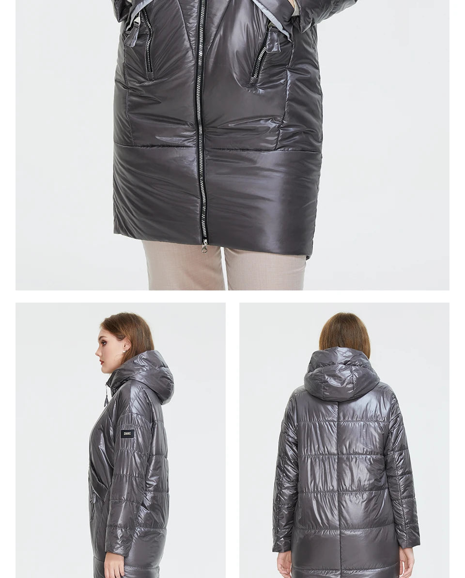 Women's Hooded Parka Jacket Plus Size Mid-Length Cotton Lined Coat