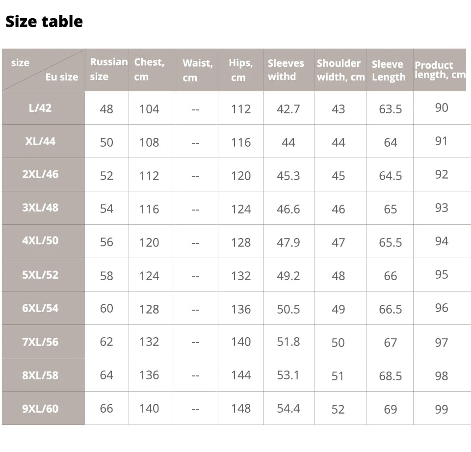 | 5XL | 24-26 | 20-22 | 52 | 128-132 | 98-100 | 52-54 |