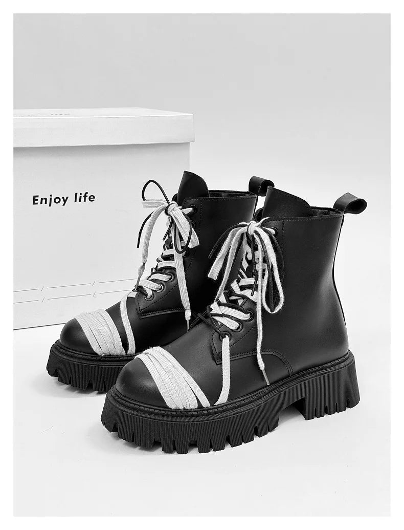 Designed for the urban adventurer who values both heritage style and modern edge, these leather ankle boots feature a 5cm platform sole that adds height and presence. The personalized shoelace design and retro motorcycle aesthetic make these boots perfect for street wear, casual outings, or making a bold fashion statement.