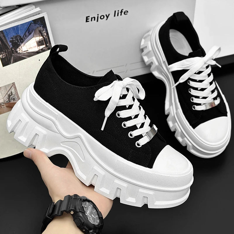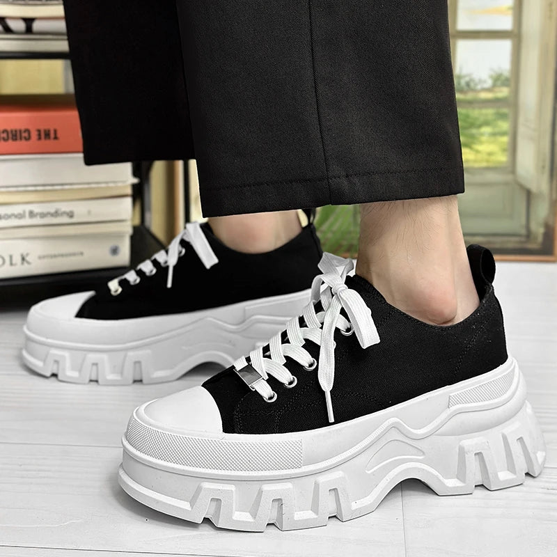 Men's Autumn Platform Walking Shoes - Chunky Thick Sole Lace-Up Sneakers